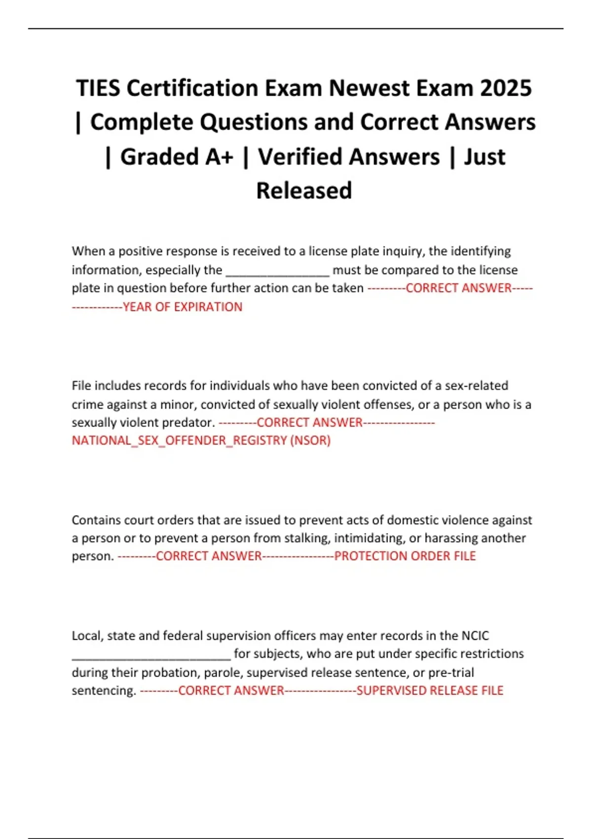 TIES Certification Exam Newest Exam 2025 | Complete Questions and Correct Answers | Graded A+ | Verified Answers | Just Released