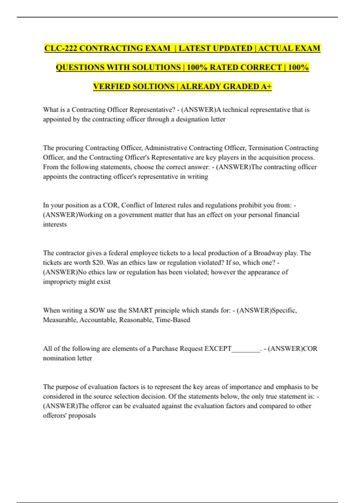 From the following statements, choose the correct answer: - (ANSWER)The contracting officer