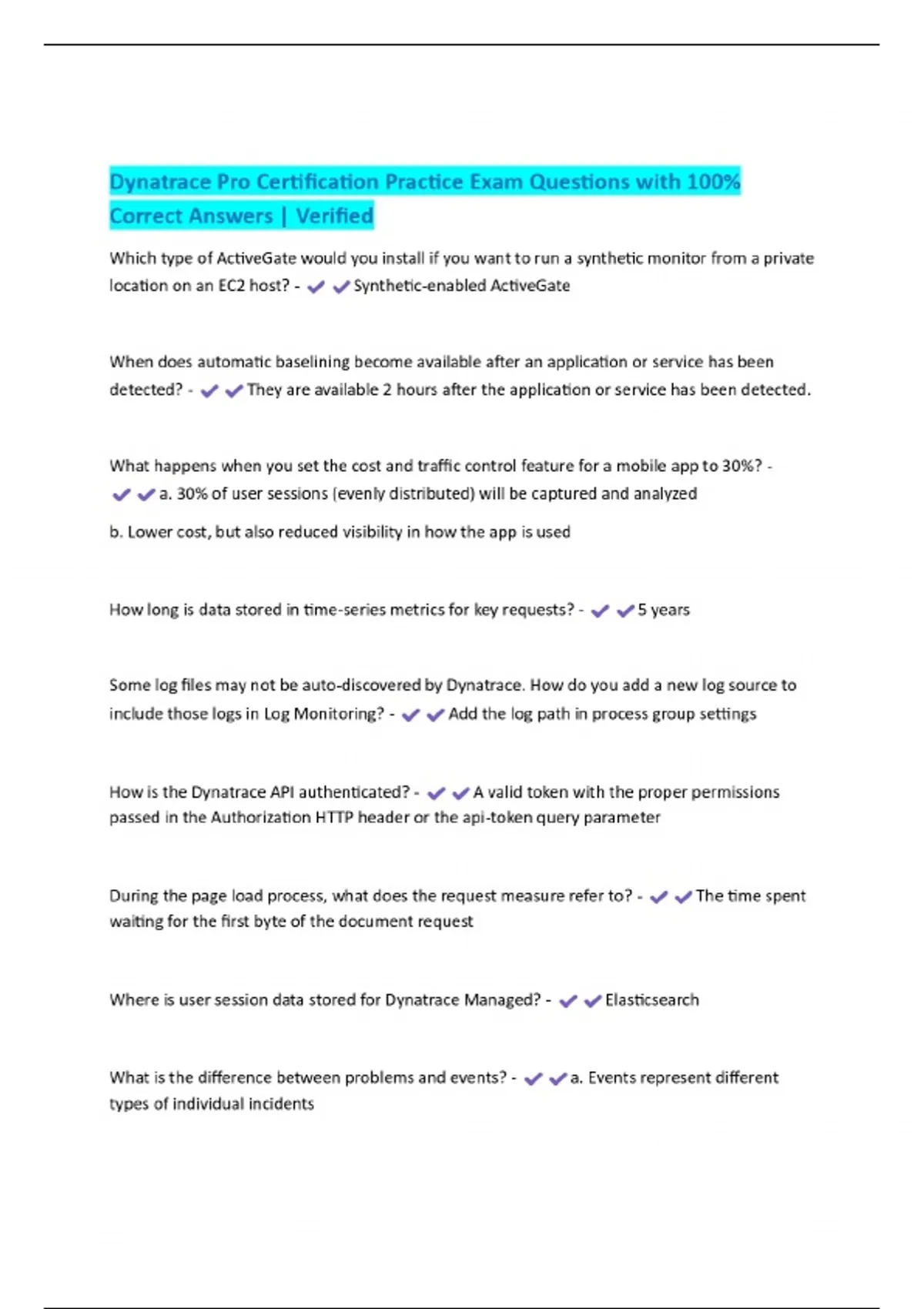 Dynatrace Pro Certification Practice Exam Questions with 100% Correct Answers | Verified