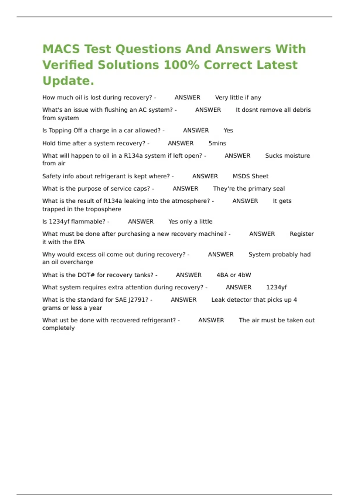 MACS Test Questions And Answers With Verified Solutions 100% Correct Latest Update.