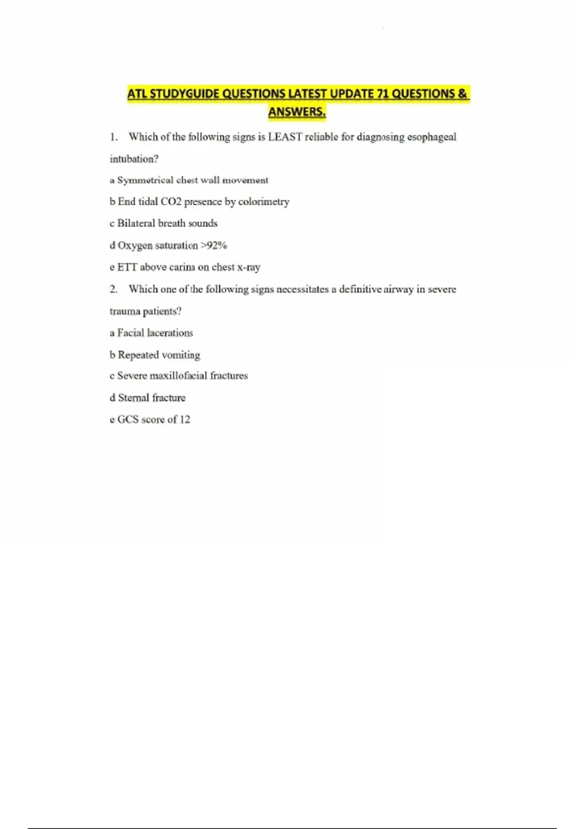 ATL STUDYGUIDE QUESTIONS LATEST UPDATE 71 QUESTIONS & ANSWERS.