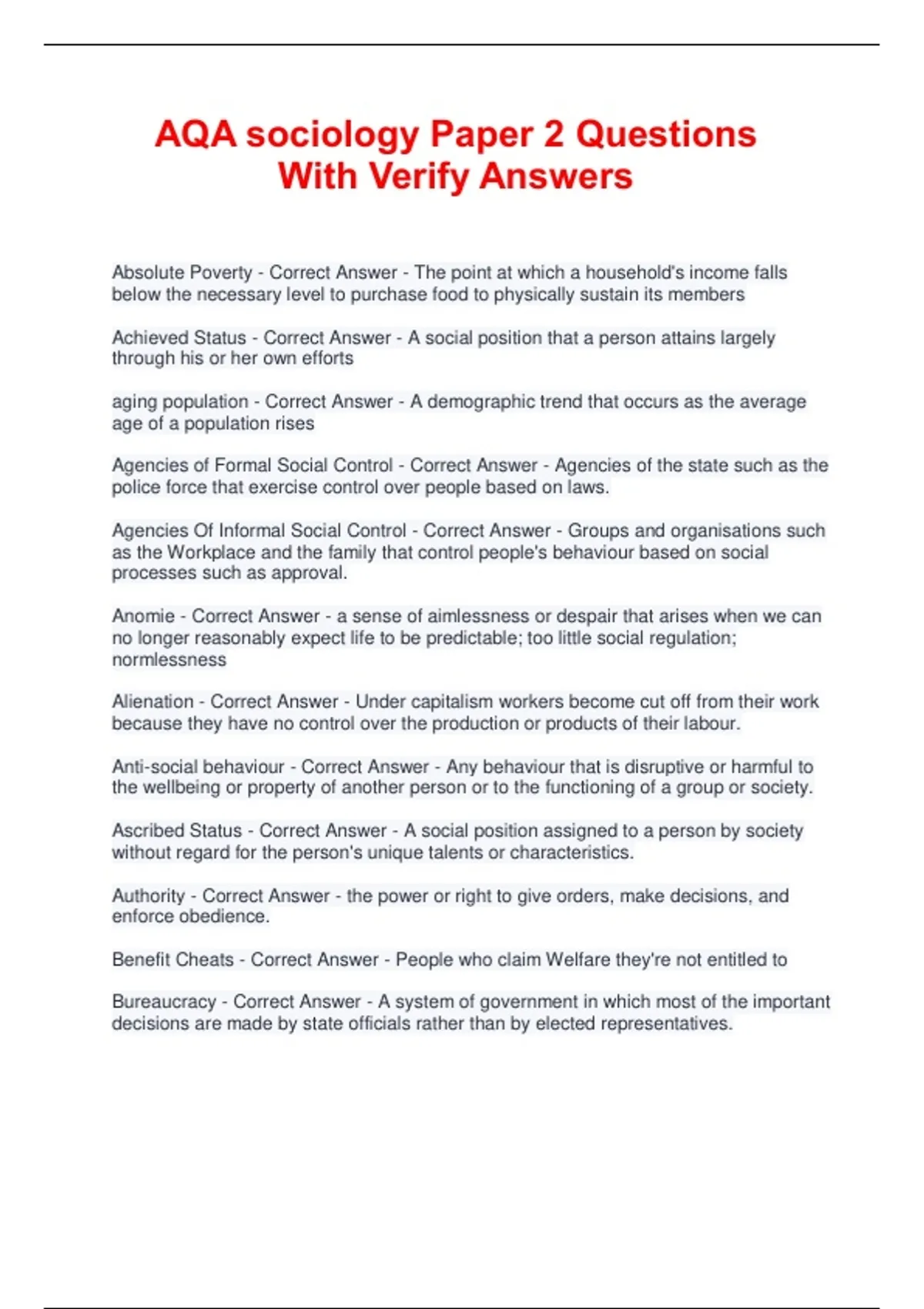 AQA sociology Paper 2 Questions With Verify AnswersAQA sociology Paper 2 Questions With Verify AnswersAQA sociology Paper 2 Questions With Verify AnswersAQA sociology Paper 2 Questions With Verify Answers