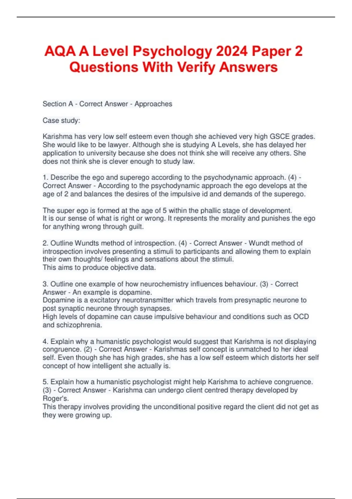 AQA A Level Psychology 2024 Paper 2 Questions With Verify AnswersAQA A Level Psychology 2024 Paper 2 Questions With Verify AnswersAQA A Level Psychology 2024 Paper 2 Questions With Verify AnswersAQA A Level Psychology 2024 Paper 2 Questions With Verify Answers