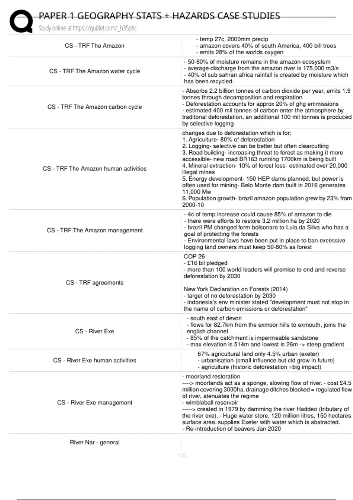 , PAPER 1 GEOGRAPHY STATS + HAZARDS CASE STUDIES