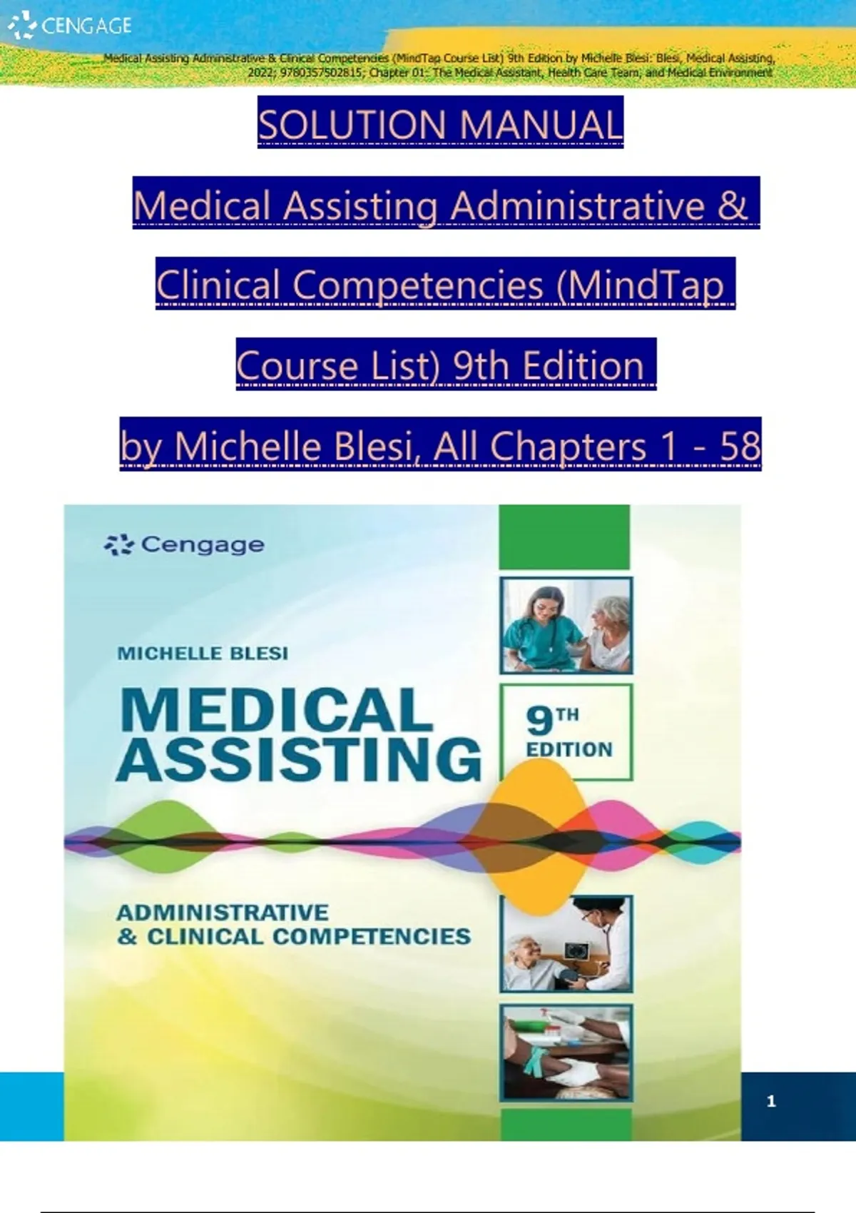 Blesi, Medical Assisting, 2022; 9780357502815; Chapter 01: The Medical Assistant,