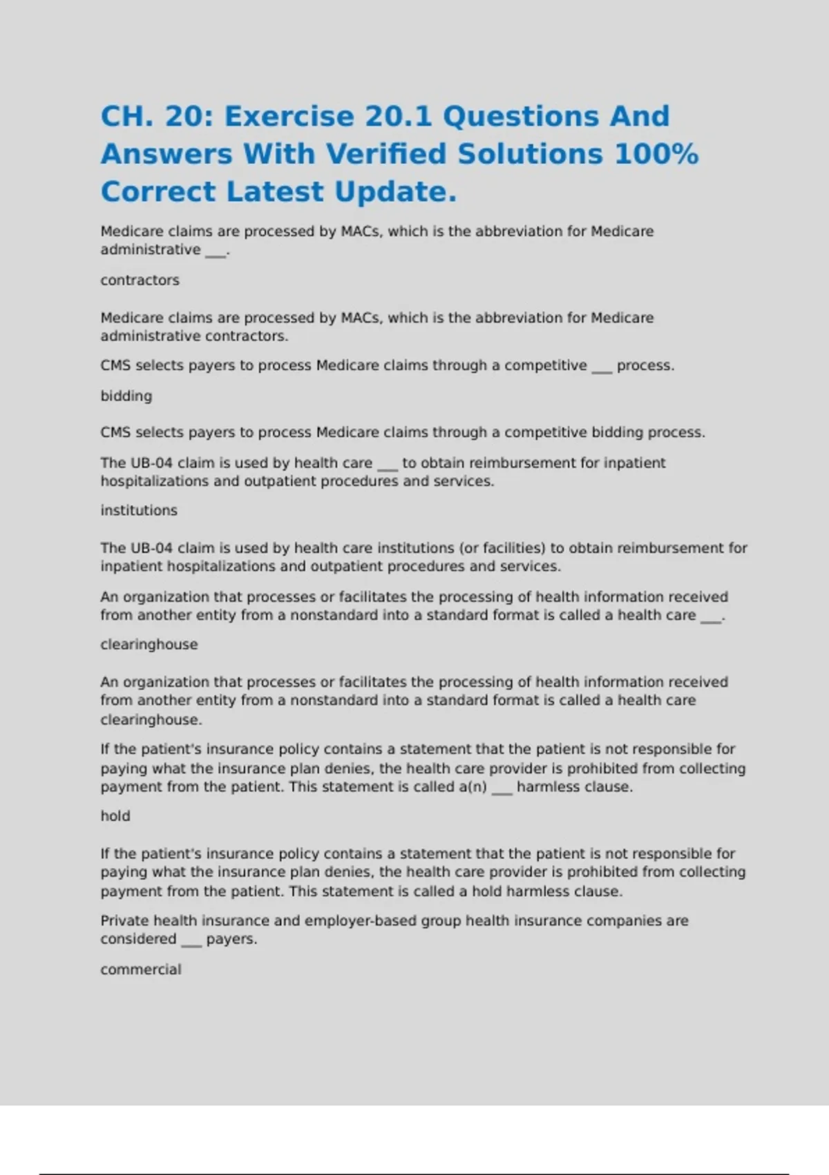 CH. 20: Exercise 20.1 Questions And