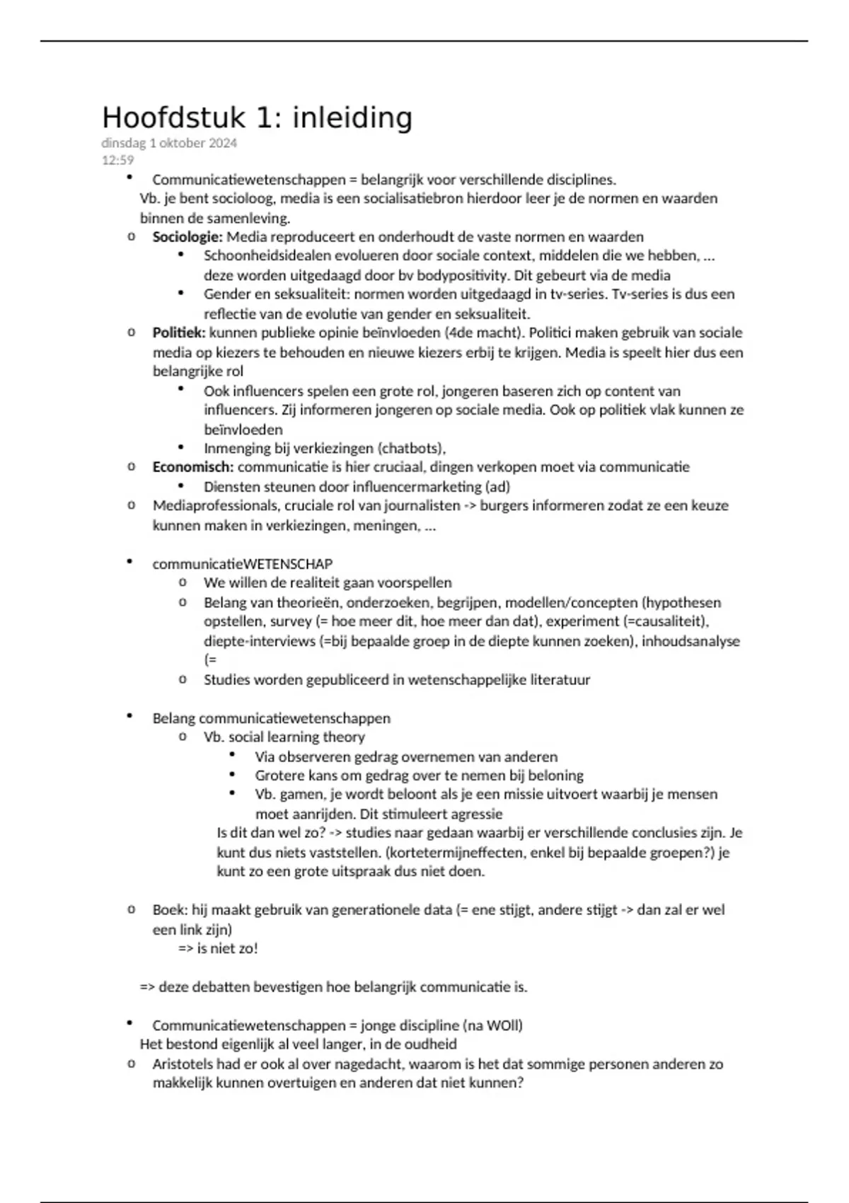Communicatiewetenschappen = belangrijk voor verschillende disciplines.