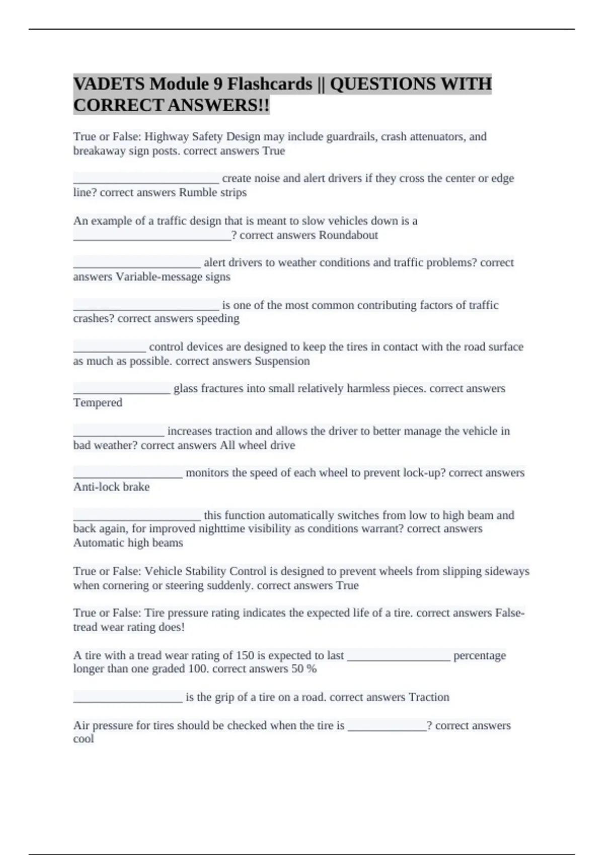 crashes? correct answers speeding