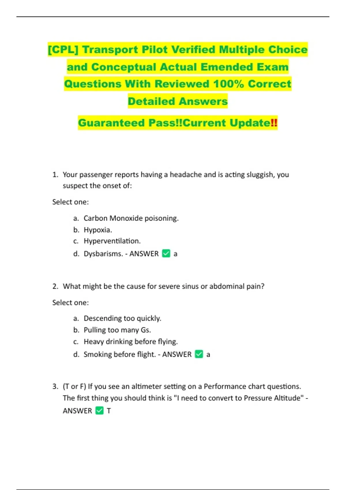 3. (T or F) If you see an altimeter setting on a Performance chart questions.