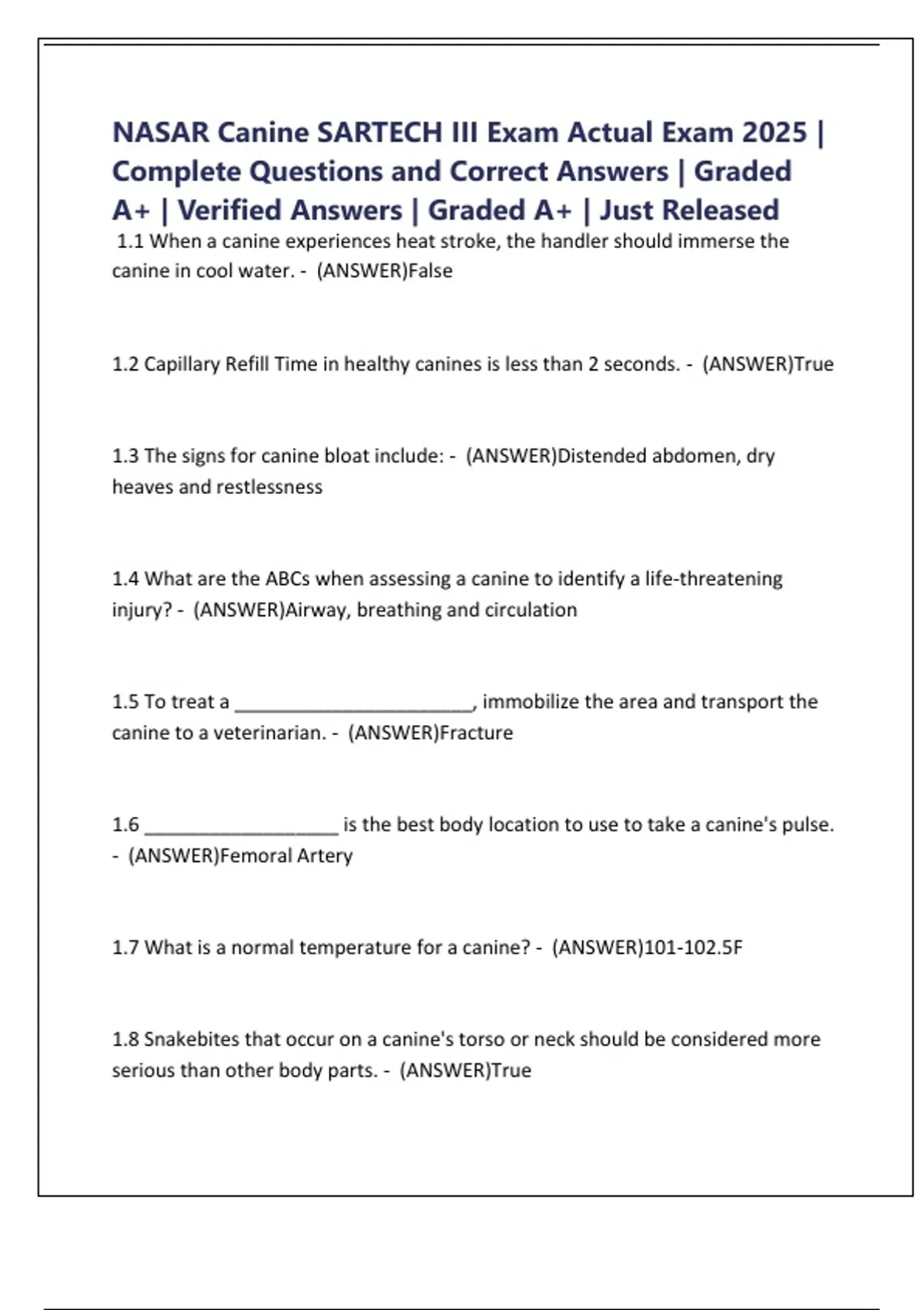 NASAR Canine SARTECH III Exam Actual Exam 2025 | Complete Questions and Correct Answers | Graded A+ | Verified Answers | Graded A+ | Just Released