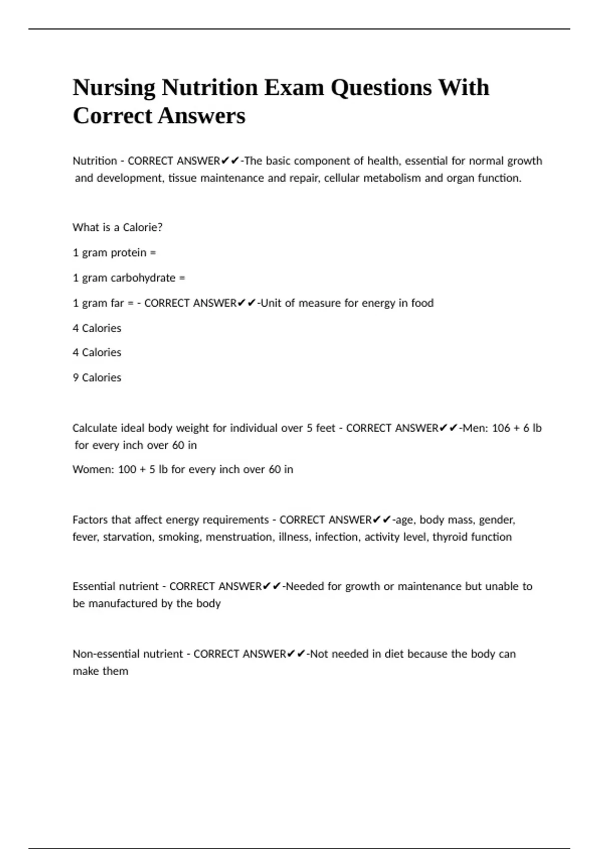 Nutrition |- |CORRECT |ANSWER✔✔-The |basic |component |of |health, |essential |for |normal |growth