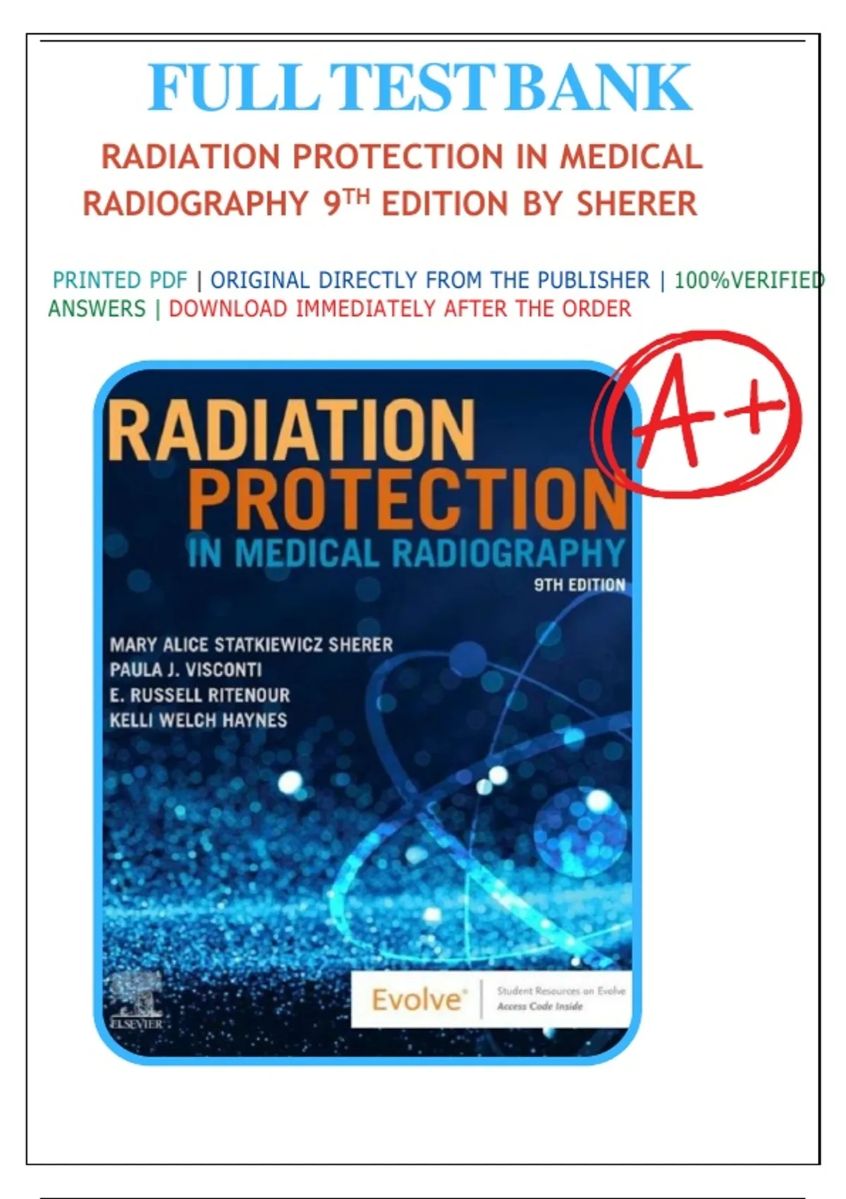 Test Bank For Radiation Protection in Medical Radiography 9th Edition By Mary Alice Statkiewicz Sherer; Paula J. Visconti; E. Russell Ritenour; Kelli Haynes| 9780323825030 | All Chapters 1-16| LATEST