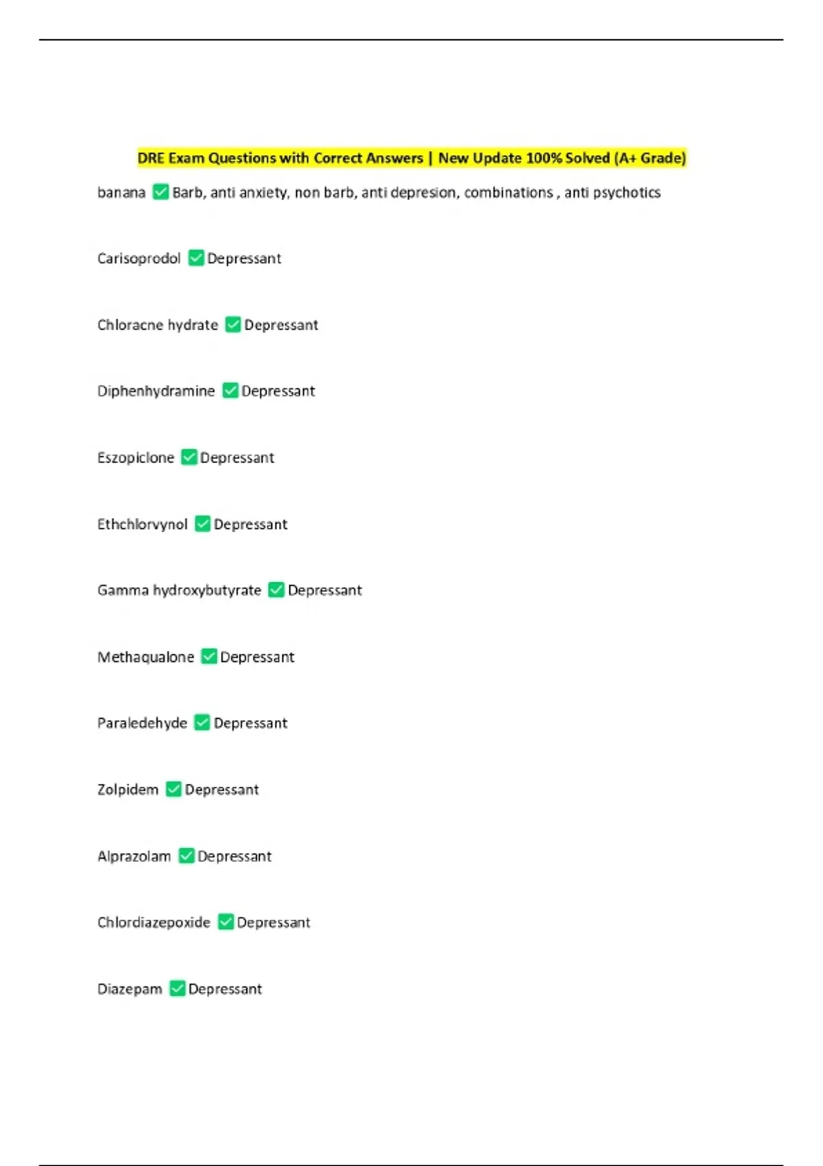 DRE Exam Questions with Correct Answers | New Update 100% Solved (A+ Grade)