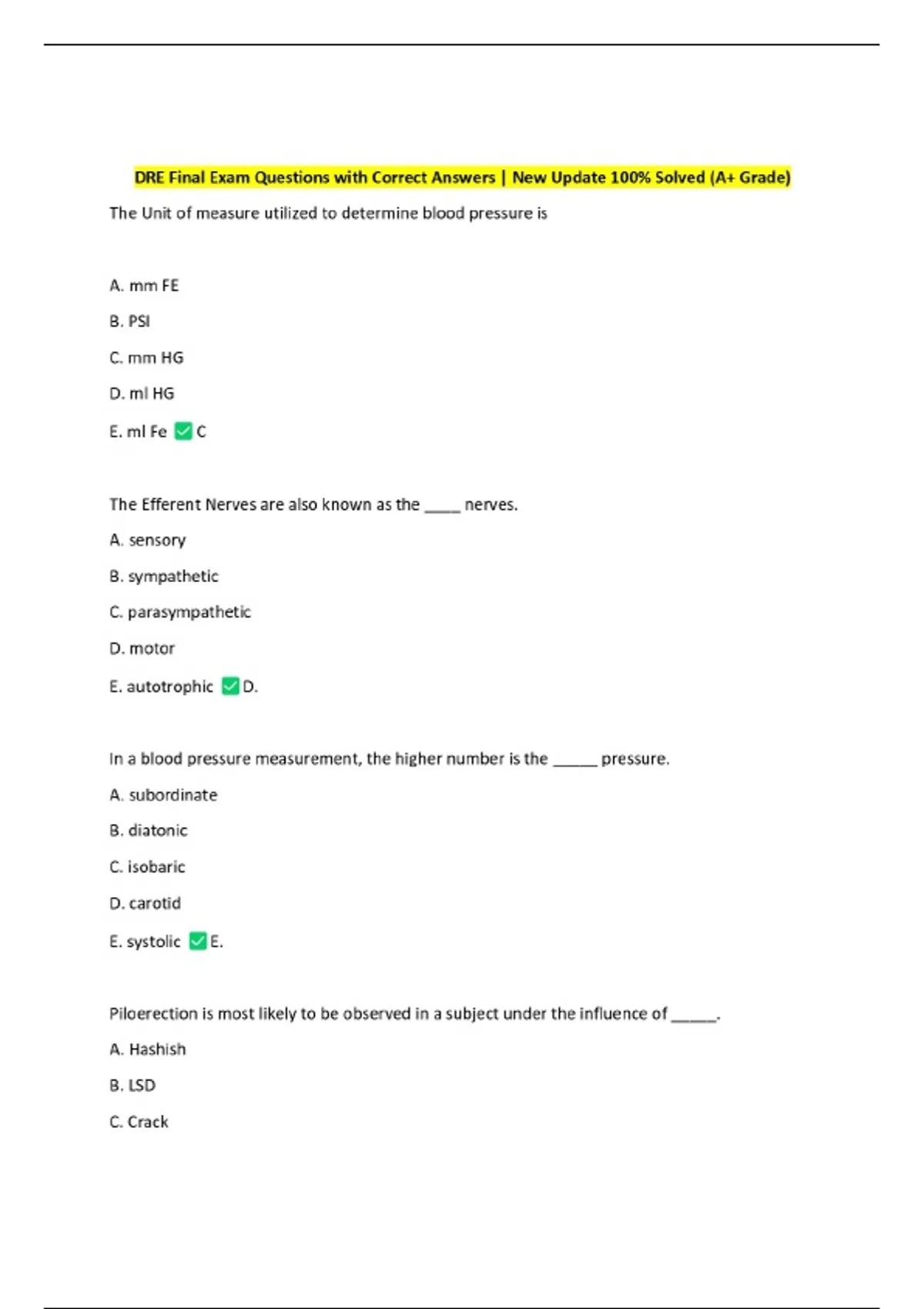 DRE Final Exam Questions with Correct Answers | New Update 100% Solved (A+ Grade)