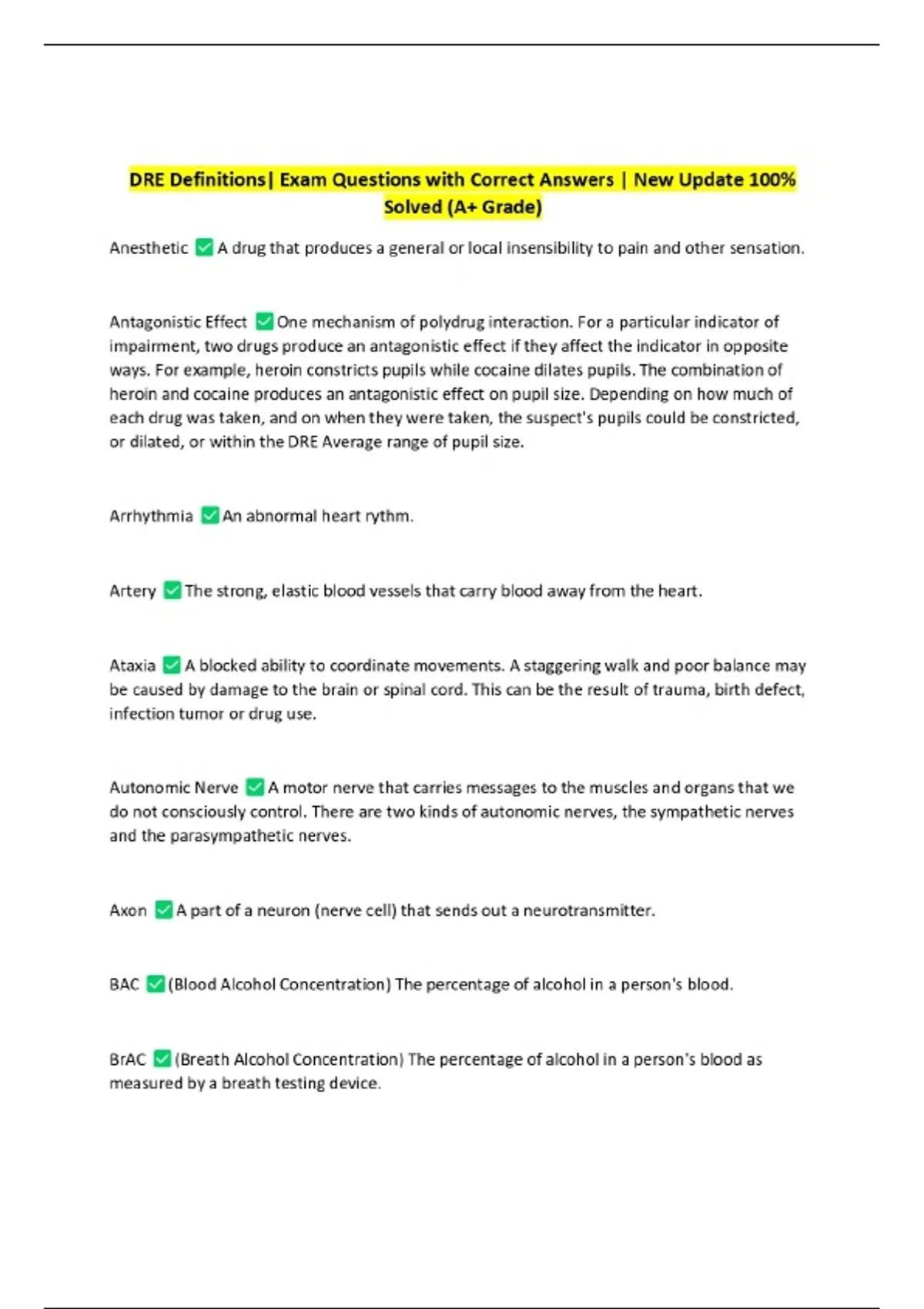 DRE Definitions| Exam Questions with Correct Answers | New Update 100% Solved (A+ Grade)