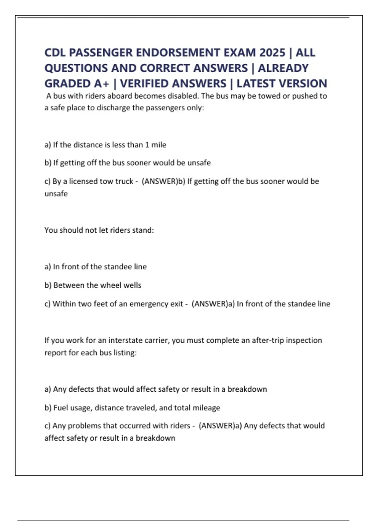 CDL PASSENGER ENDORSEMENT EXAM 2025 | ALL