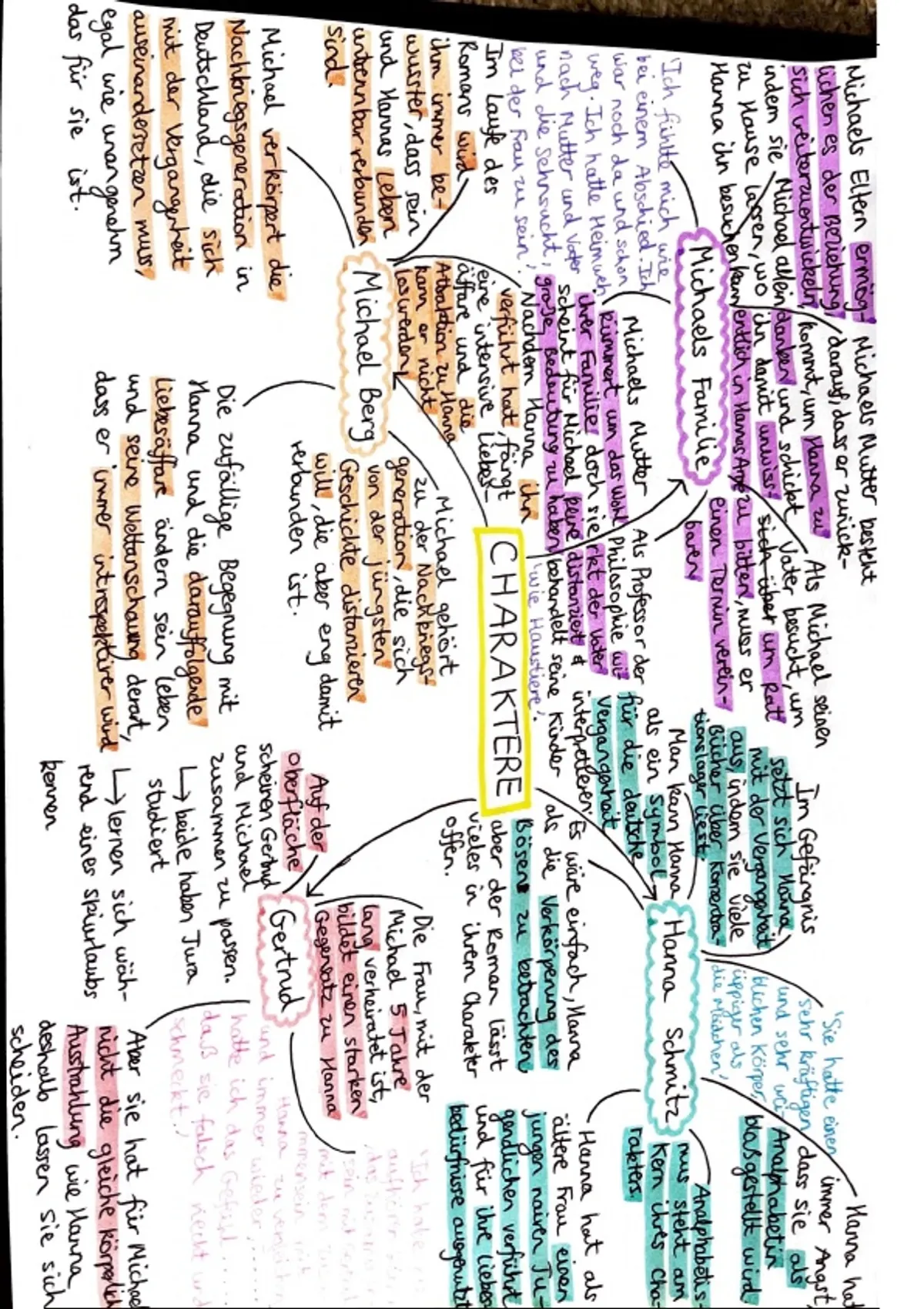 AQA examboard but suitable for other exam boards. 5 mindmaps for the book Der Vorleser including character, theme and technique analysis. Quotes are written in a different coloured pen and key words are highlighted. All mindmaps are in German. I sat A level German this summer and got an A* both overall and in paper 2 using these mindmaps.