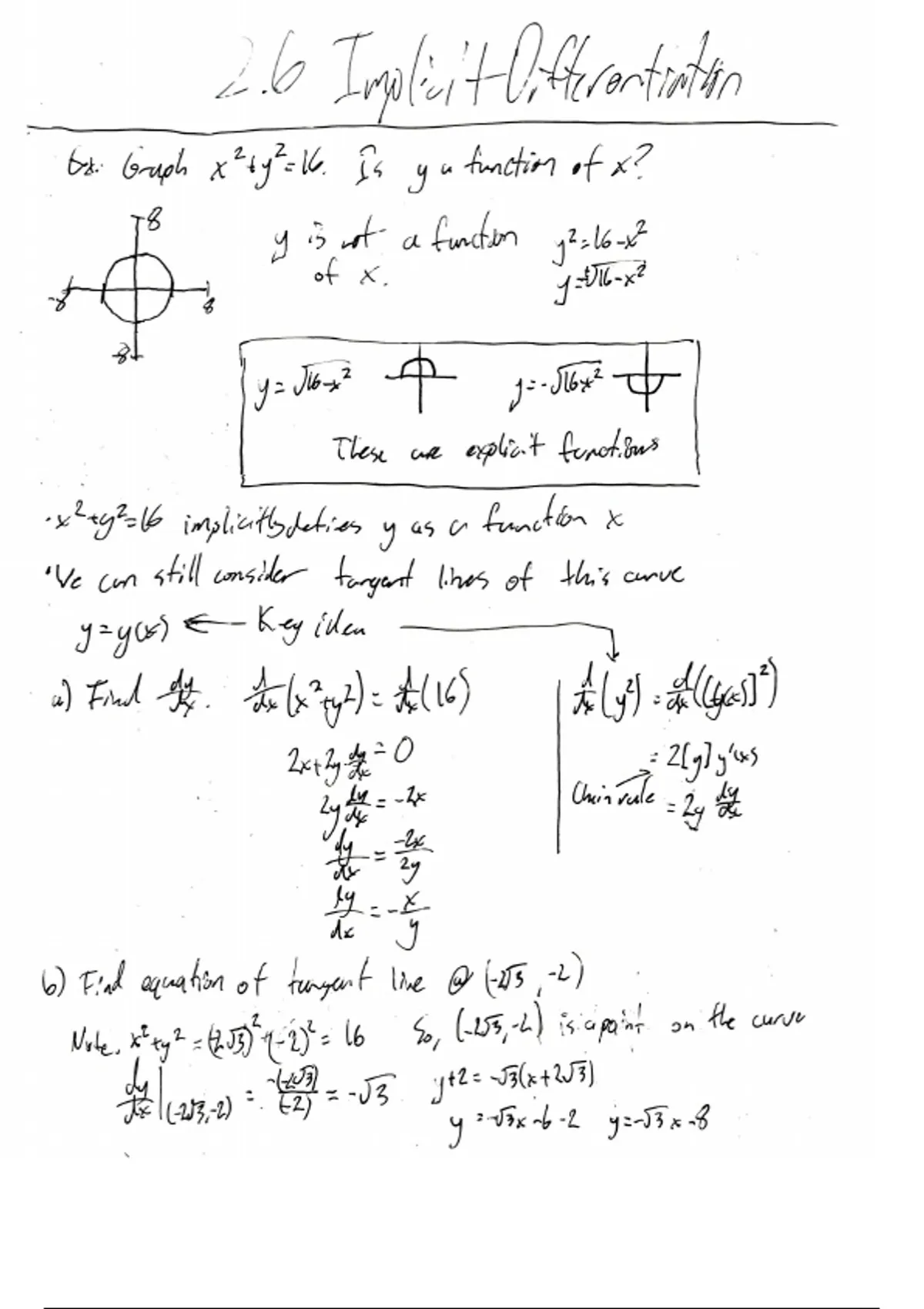 Class notes APPM 1350 2.6 Implicit Differentiation.