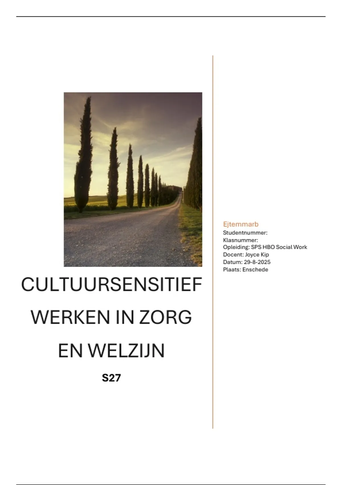 Voor u ligt het portfolio dat ik heb geschreven in het kader van de module ‘Cultuursensitief werken in zorg en welzijn’.