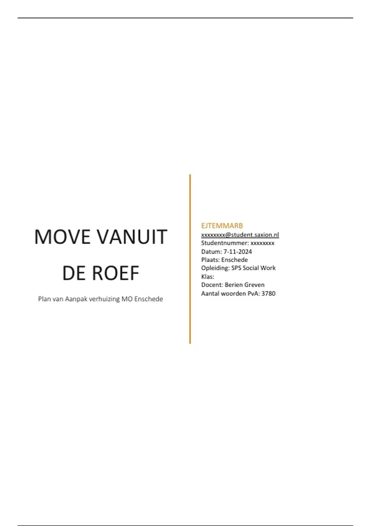 Binnen dit plan van aanpak wordt beschreven hoe de verhuizing vanuit de Roef naar locatie