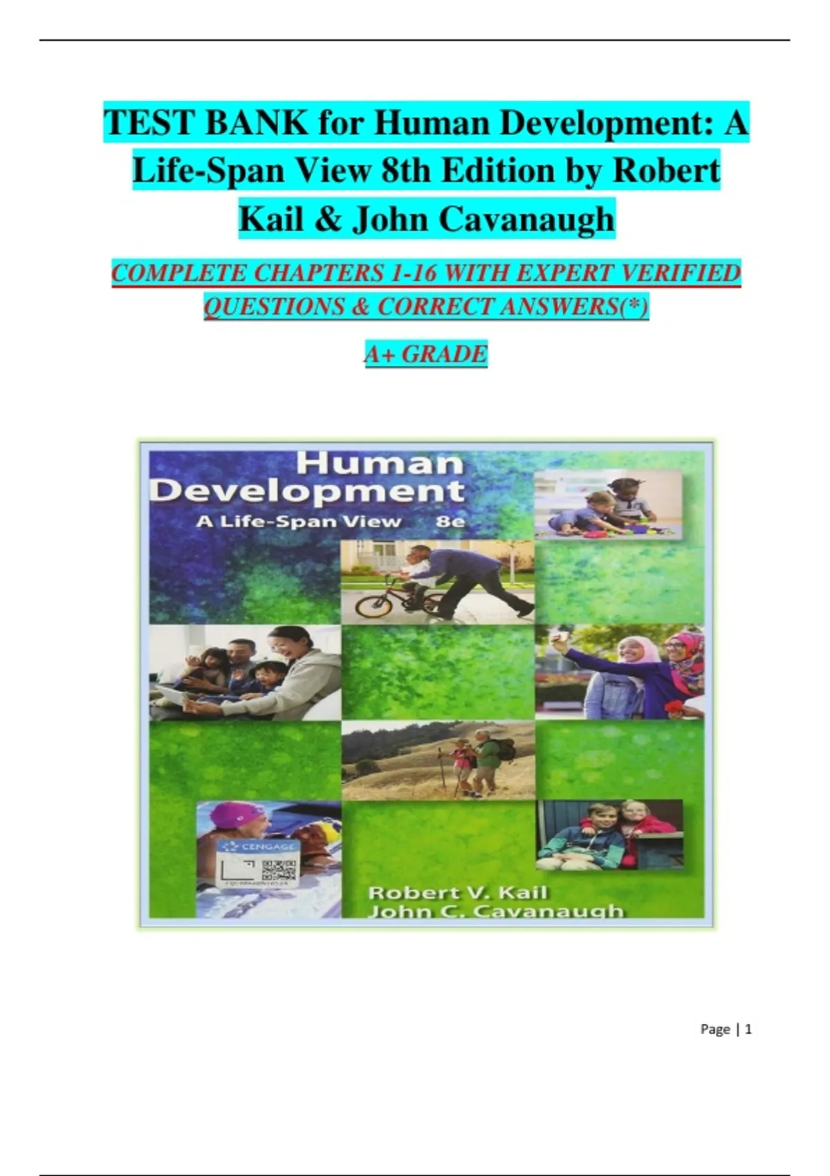 TEST BANK for Human Development: A Life -Span View 8th Edition by Robert Kail & John Cavanaugh COMPLETE CHAPTERS 1 -16 WITH EXPERT VERIFIED QUESTIONS & CORRECT ANSWERS(*) A+ GRADE