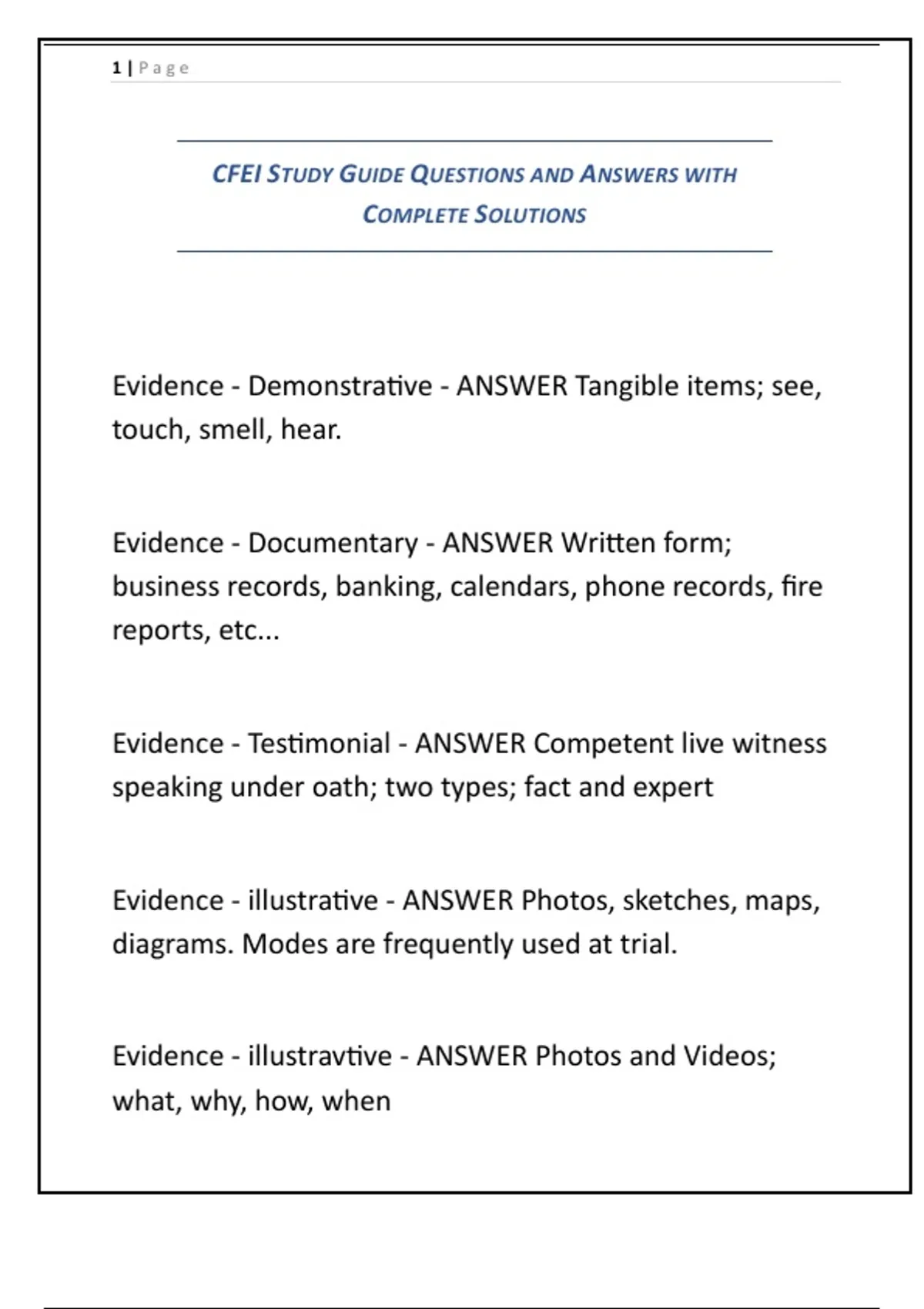 CFEI STUDY GUIDE QUESTIONS AND ANSWERS WITH
