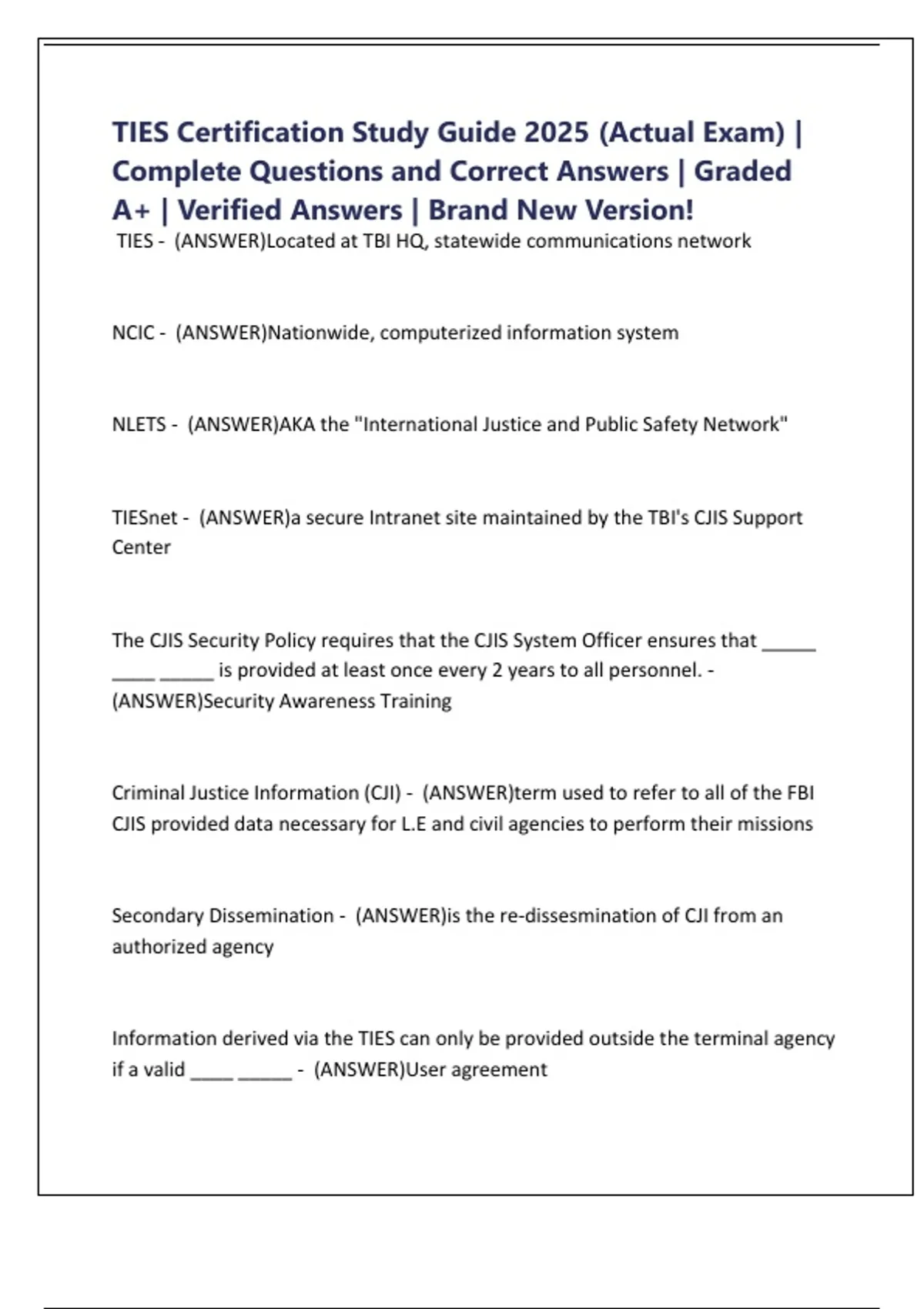 TIES Certification Study Guide 2025 (Actual Exam) |