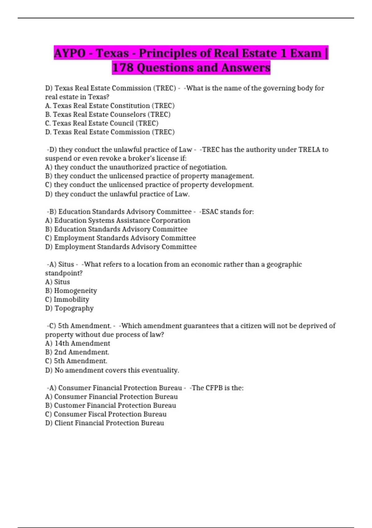 AYPO - Texas - Principles of Real Estate 1 Exam |