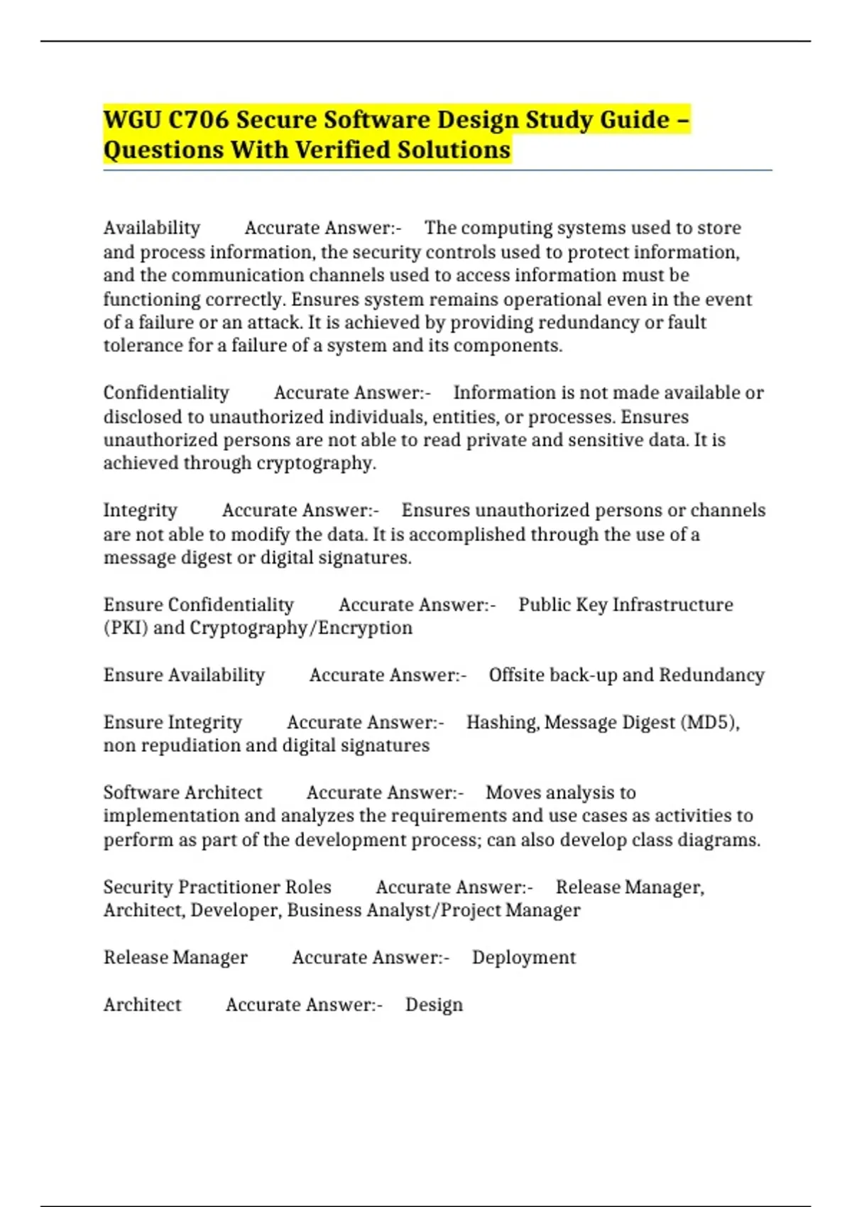 Security Practitioner Roles Accurate Answer:- Release Manager,