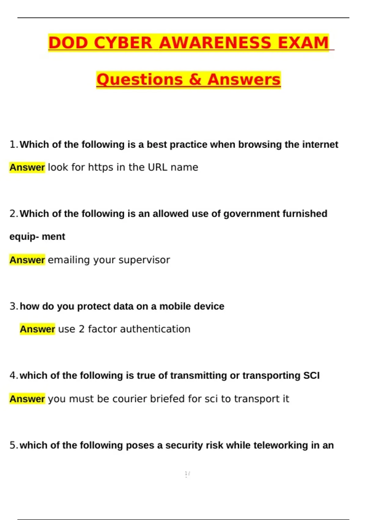5.which of the following poses a security risk while teleworking in an