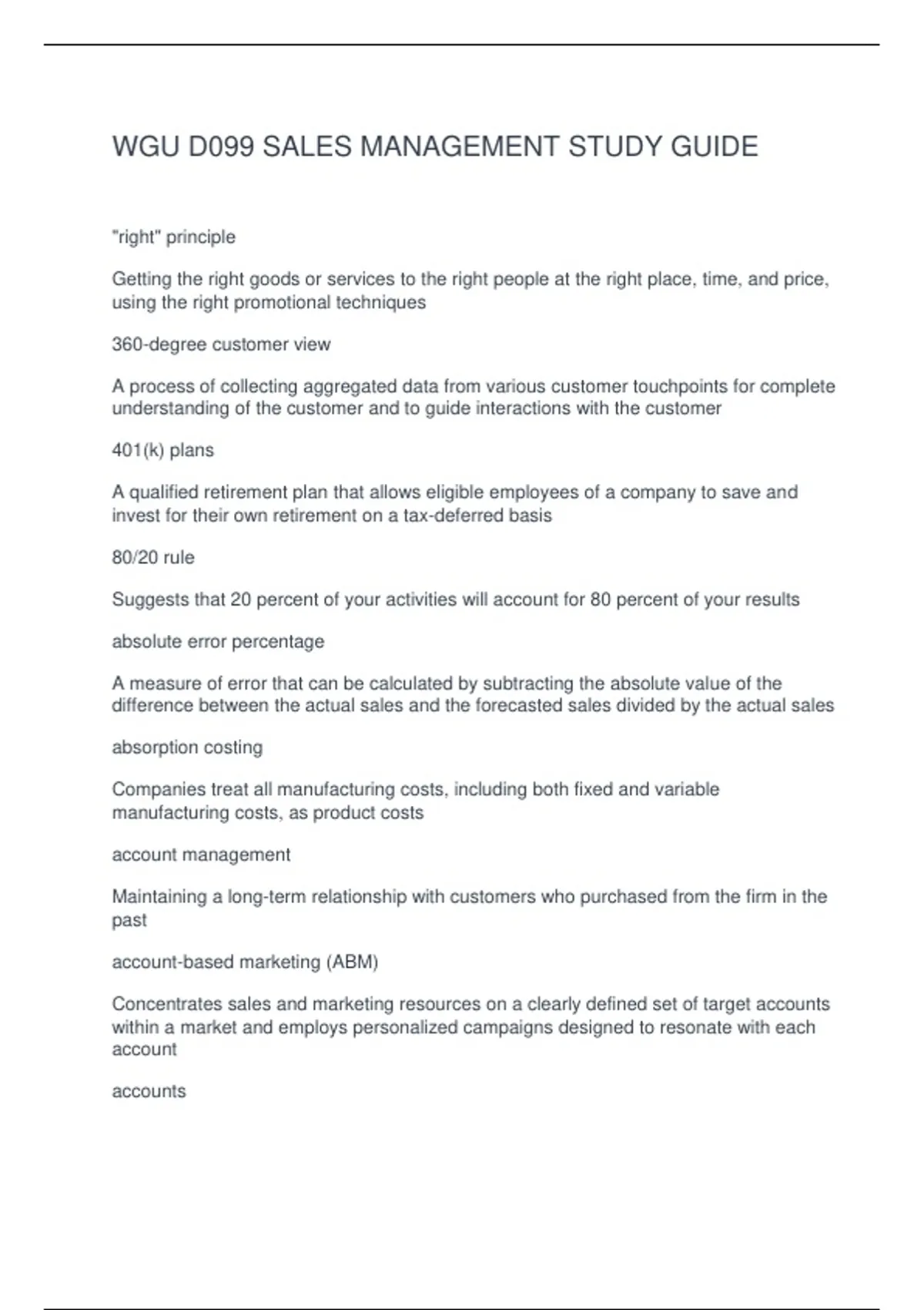 WGU D099 SALES MANAGEMENT STUDY GUIDE