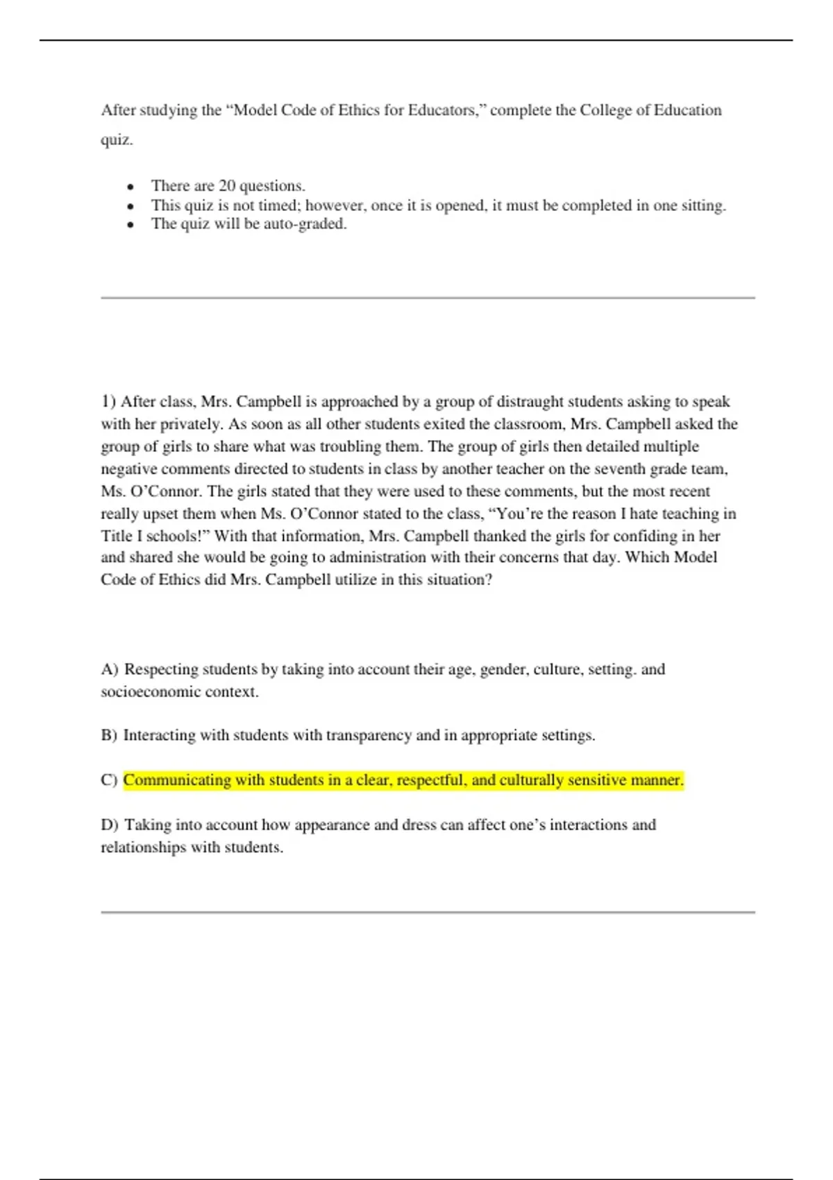 1) After class, Mrs. Campbell is approached by a group of distraught students asking to speak