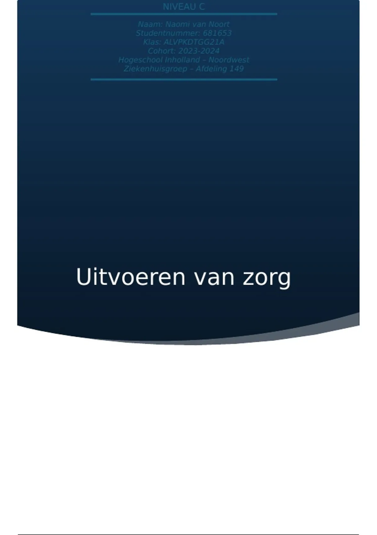 Dit verslag is geschreven voor de leeruitkomst uitvoeren van zorg niveau C. Aan de hand van een casus worden
