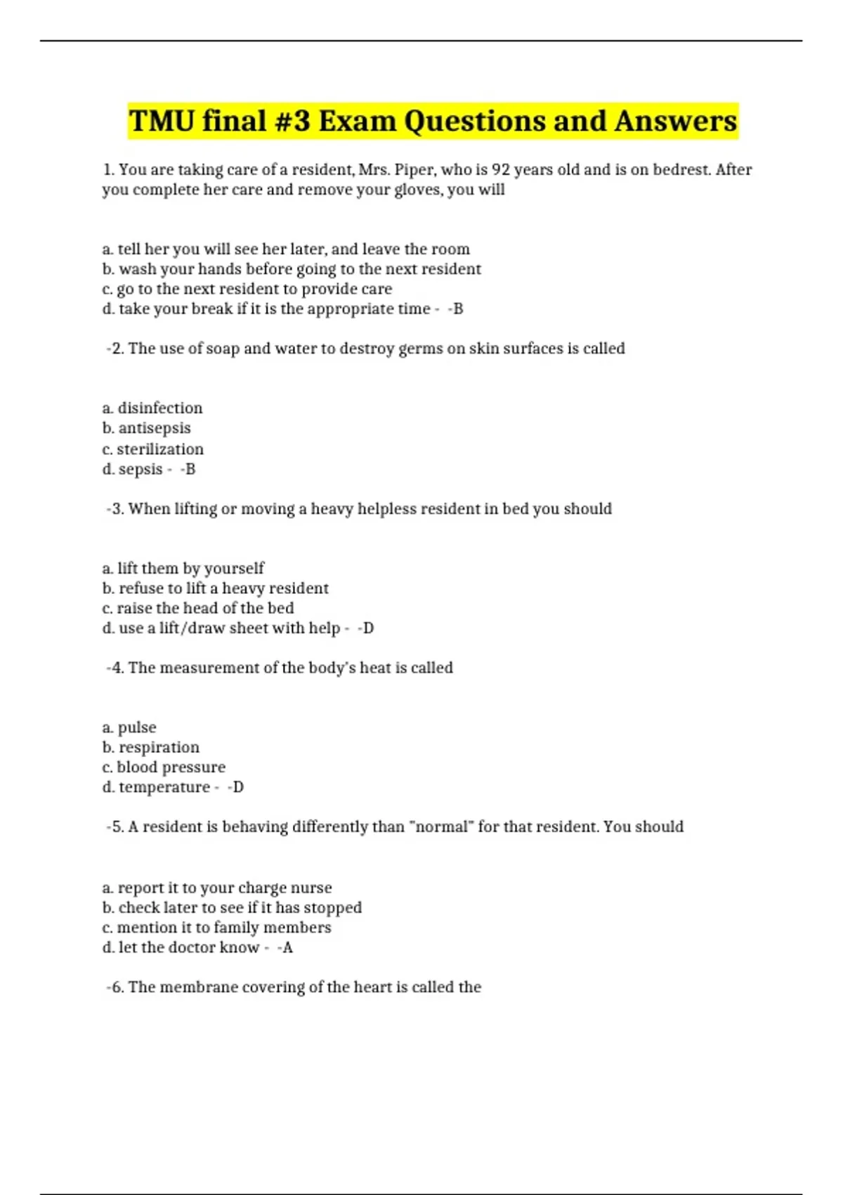 TMU final #3 Exam Questions and Answers