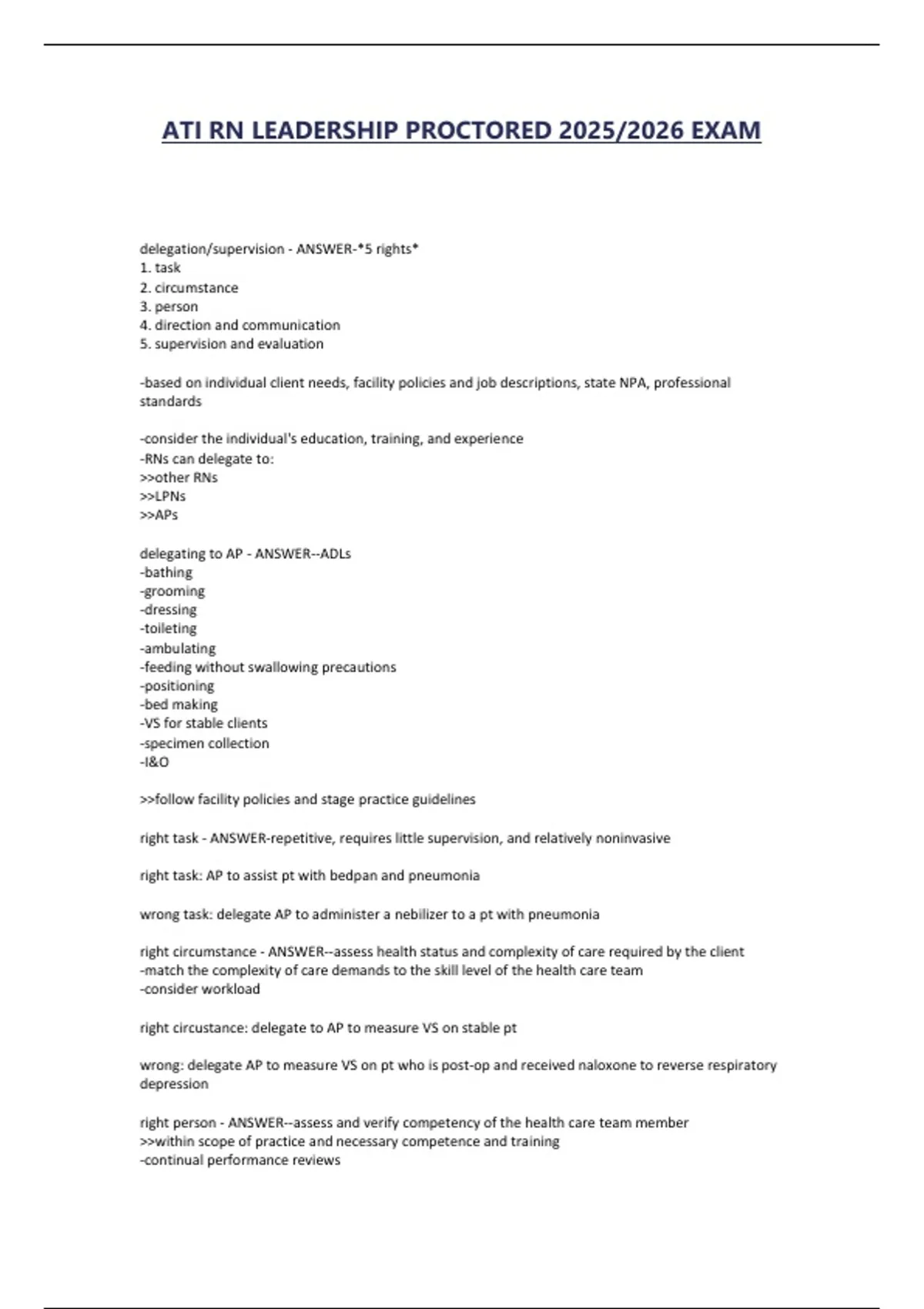ATI RN LEADERSHIP PROCTORED 2025/2026 EXAM