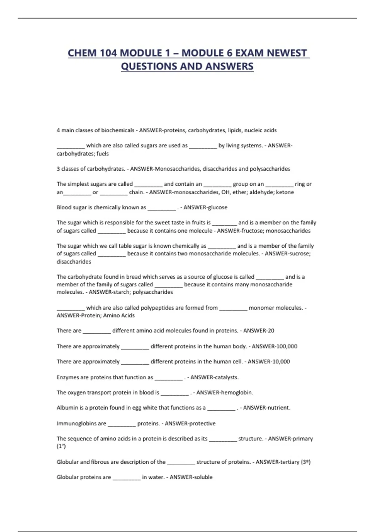 CHEM 104 MODULE 1 – MODULE 6 EXAM NEWEST