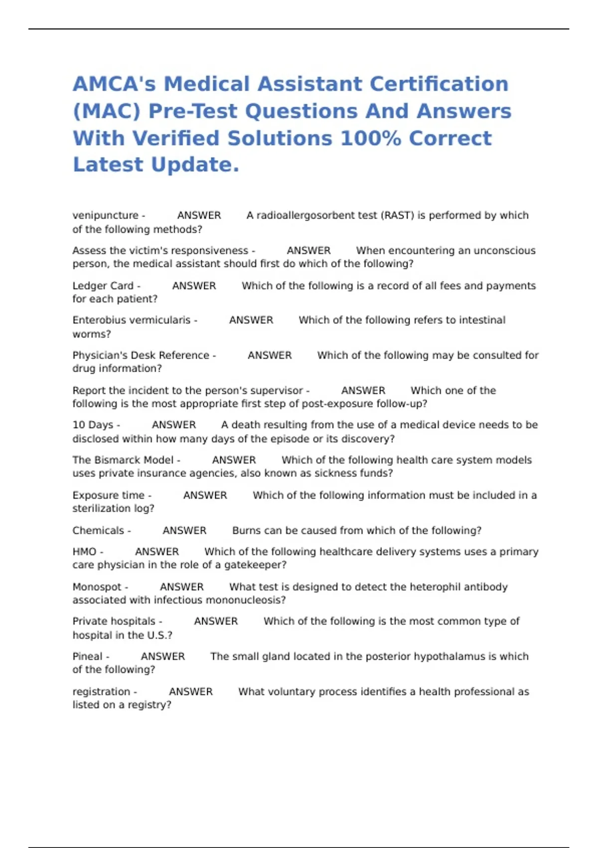 (MAC) Pre-Test Questions And Answers