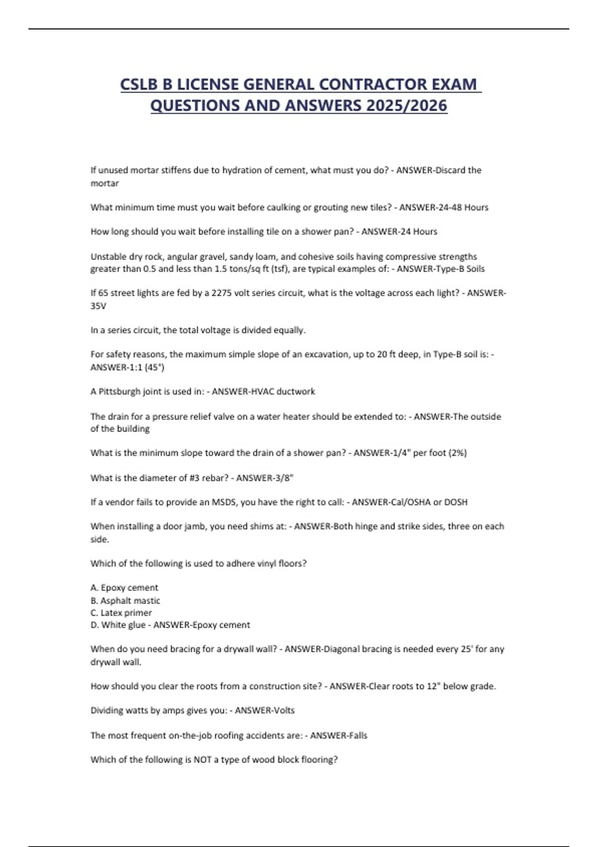 CSLB B LICENSE GENERAL CONTRACTOR EXAM