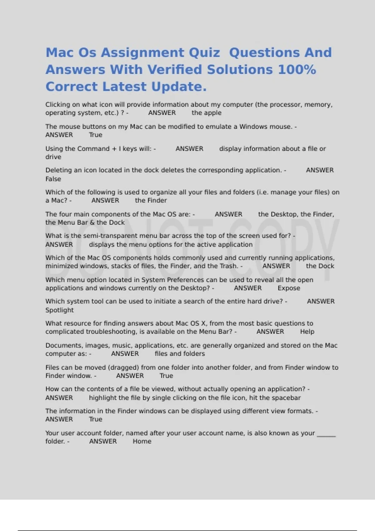 Mac Os Assignment Quiz Questions And Answers With Verified Solutions 100% Correct Latest Update.