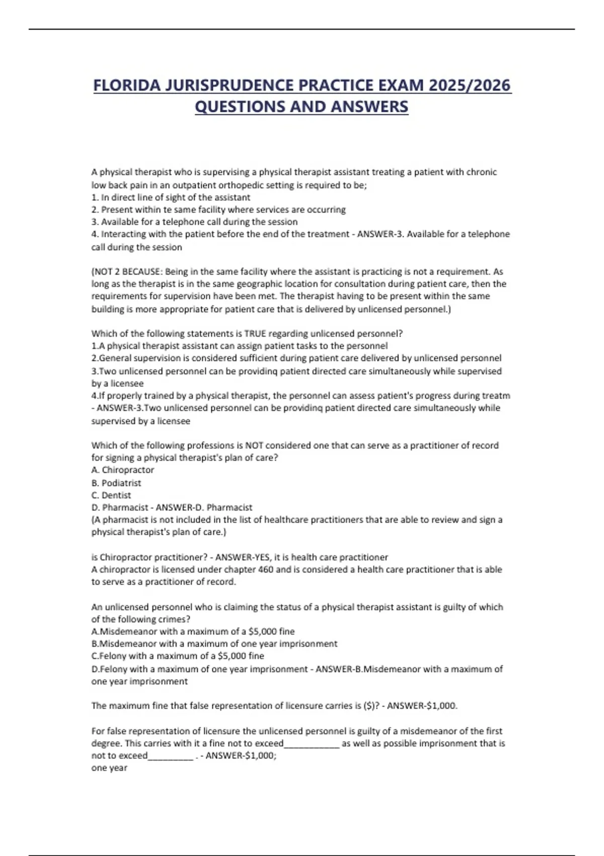 FLORIDA JURISPRUDENCE PRACTICE EXAM 2025/2026