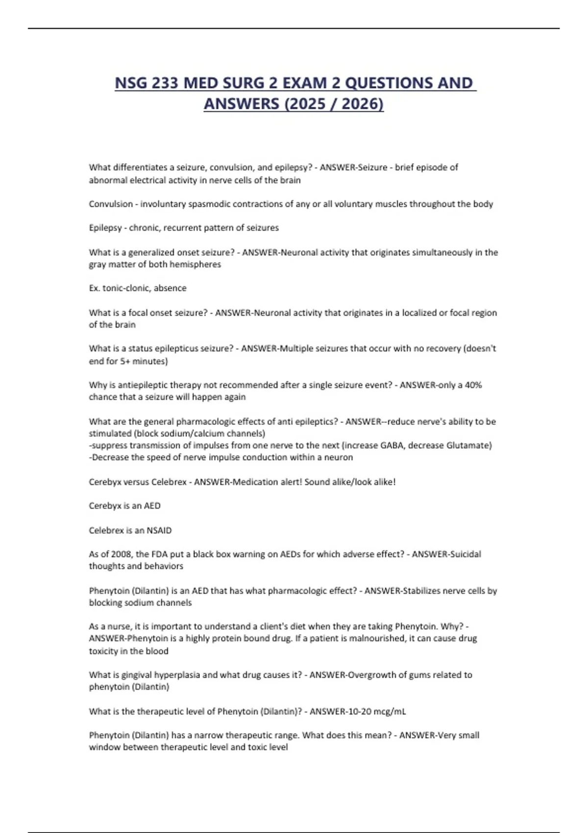 NSG 233 MED SURG 2 EXAM 2 QUESTIONS AND