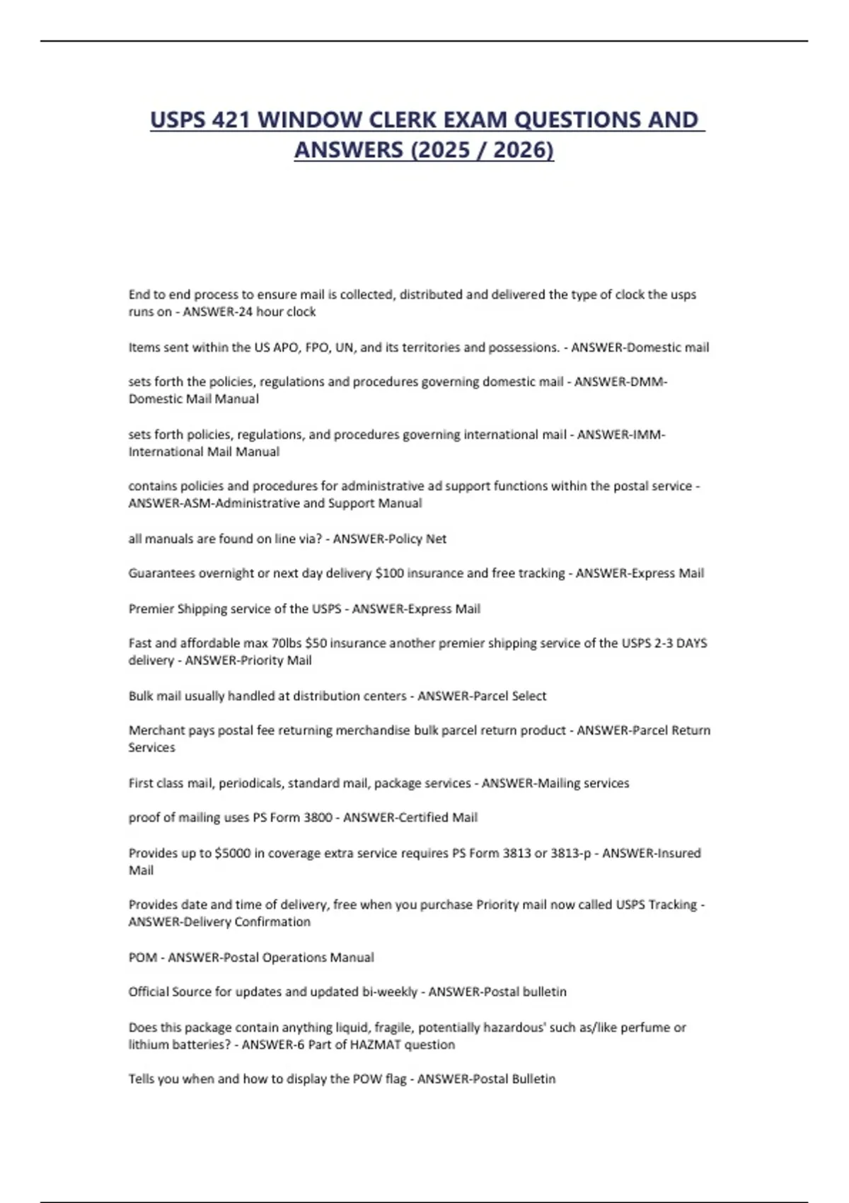 USPS 421 WINDOW CLERK EXAM QUESTIONS AND