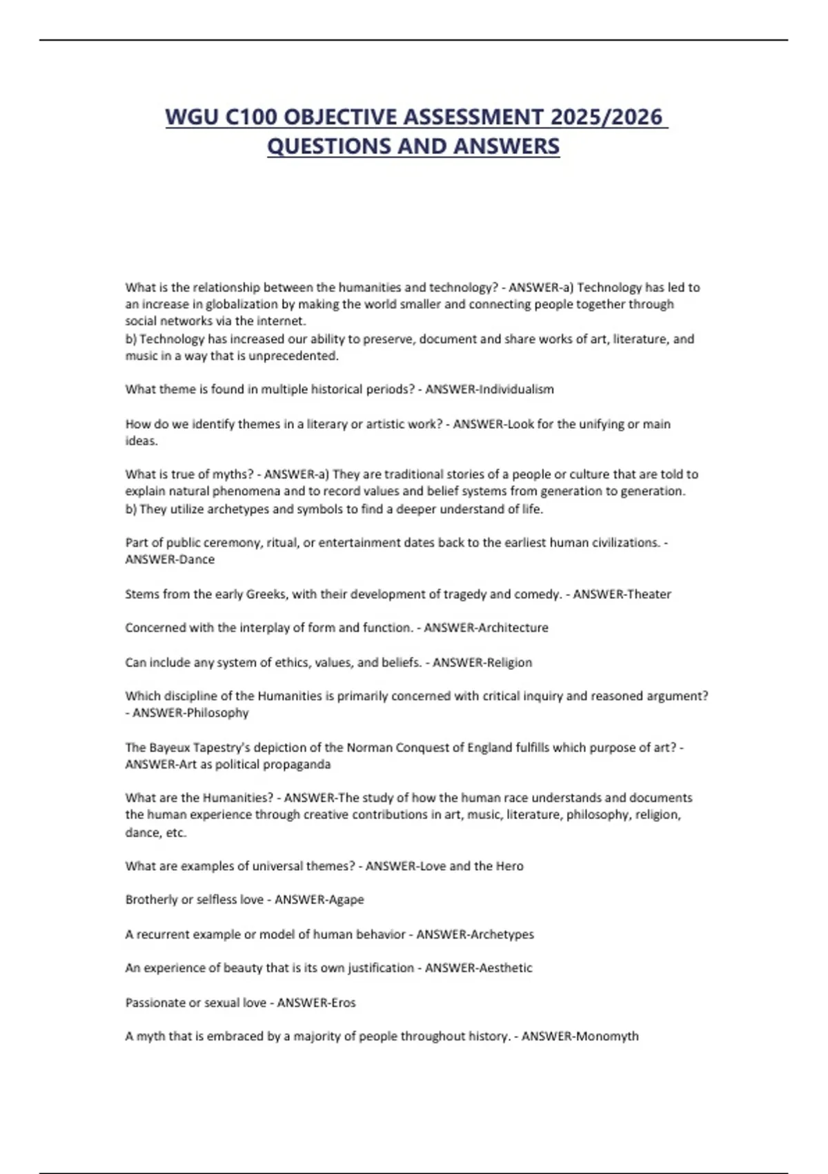 WGU C100 OBJECTIVE ASSESSMENT 2025/2026