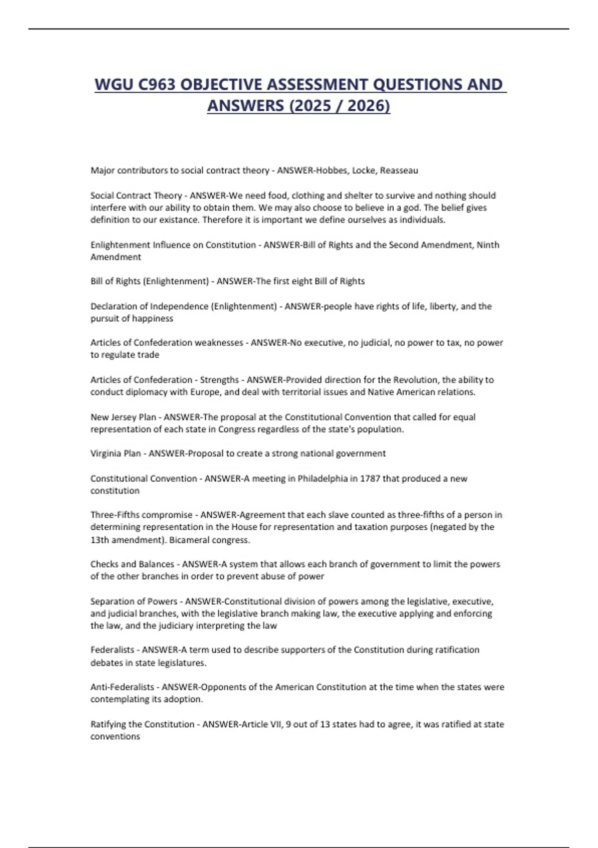 WGU C963 OBJECTIVE ASSESSMENT QUESTIONS AND