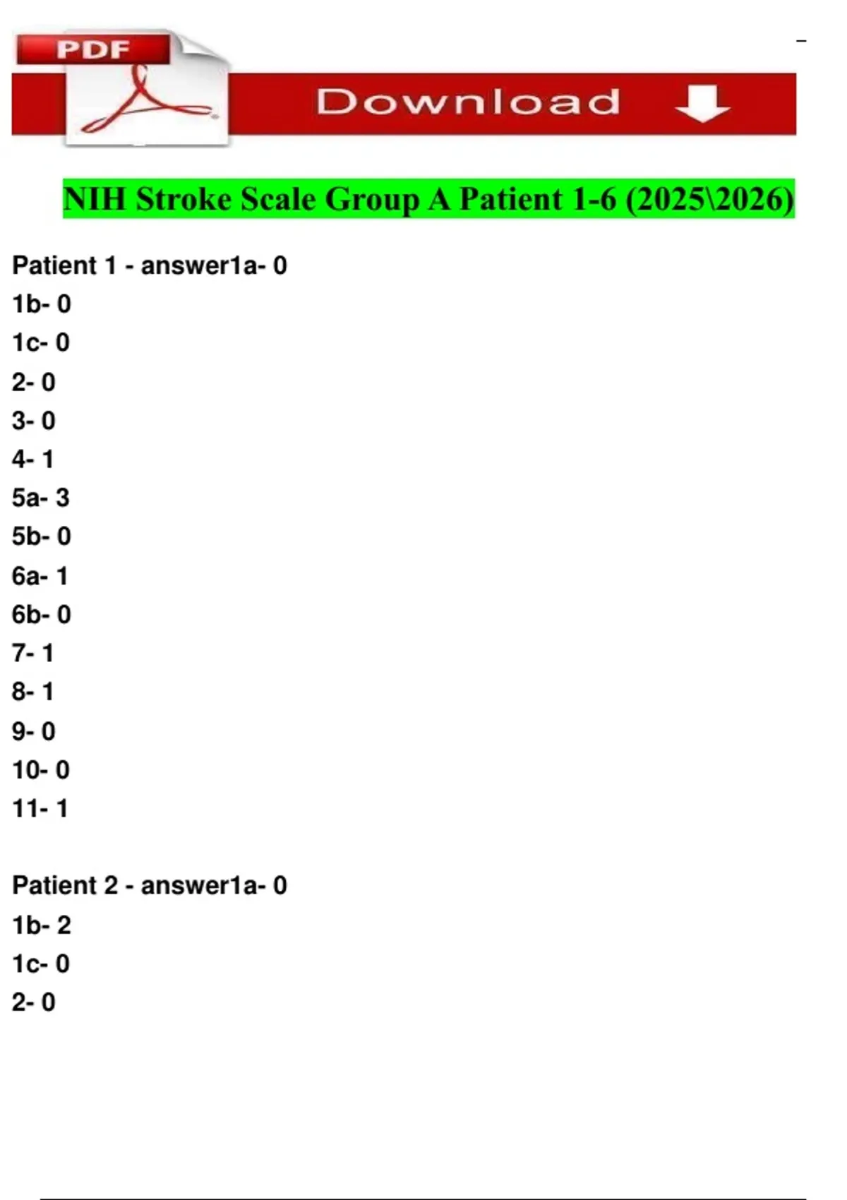 NIH Stroke Scale Group A Patient 1-6 ( update) 100% verified