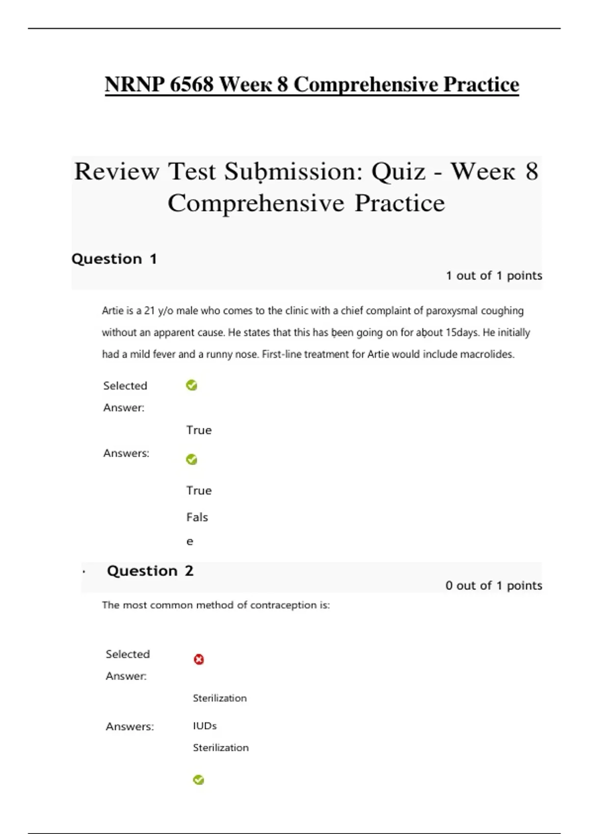 NRNP 6568 Week 8 Comprehensive Practice Review Test Submission: Quiz - Week 8 Comprehensive Practice Questions and Answers (Verified Answers) || 100% VERIFIED // A+ GRADED 2025/2026