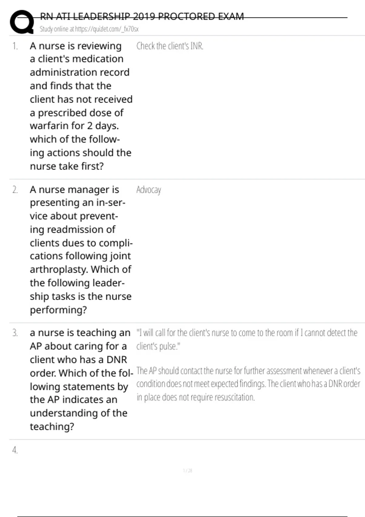 RN ATI LEADERSHIP 2019 PROCTORED EXAM
