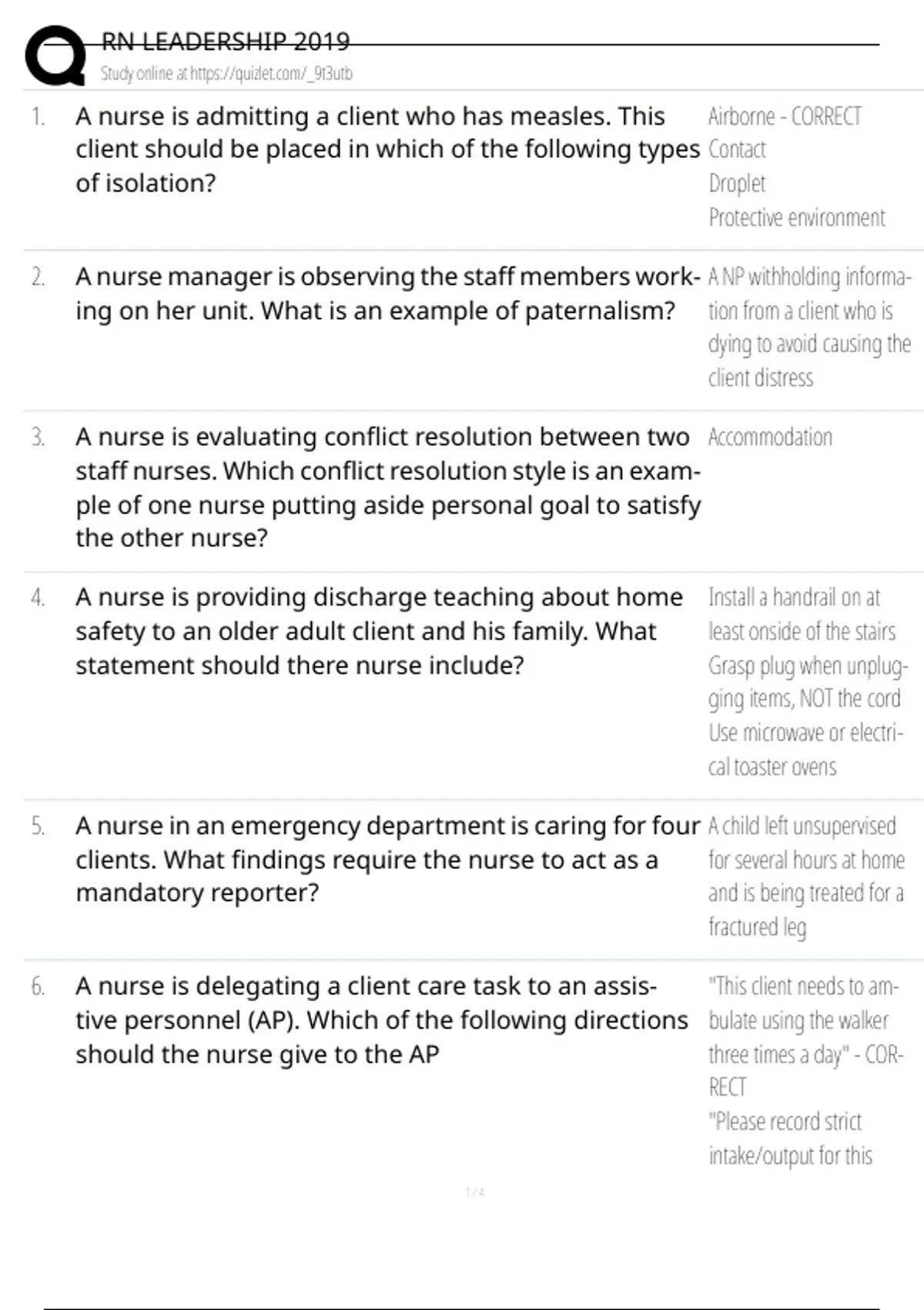 1. A nurse is admitting a client who has measles. This Airborne - CORRECT