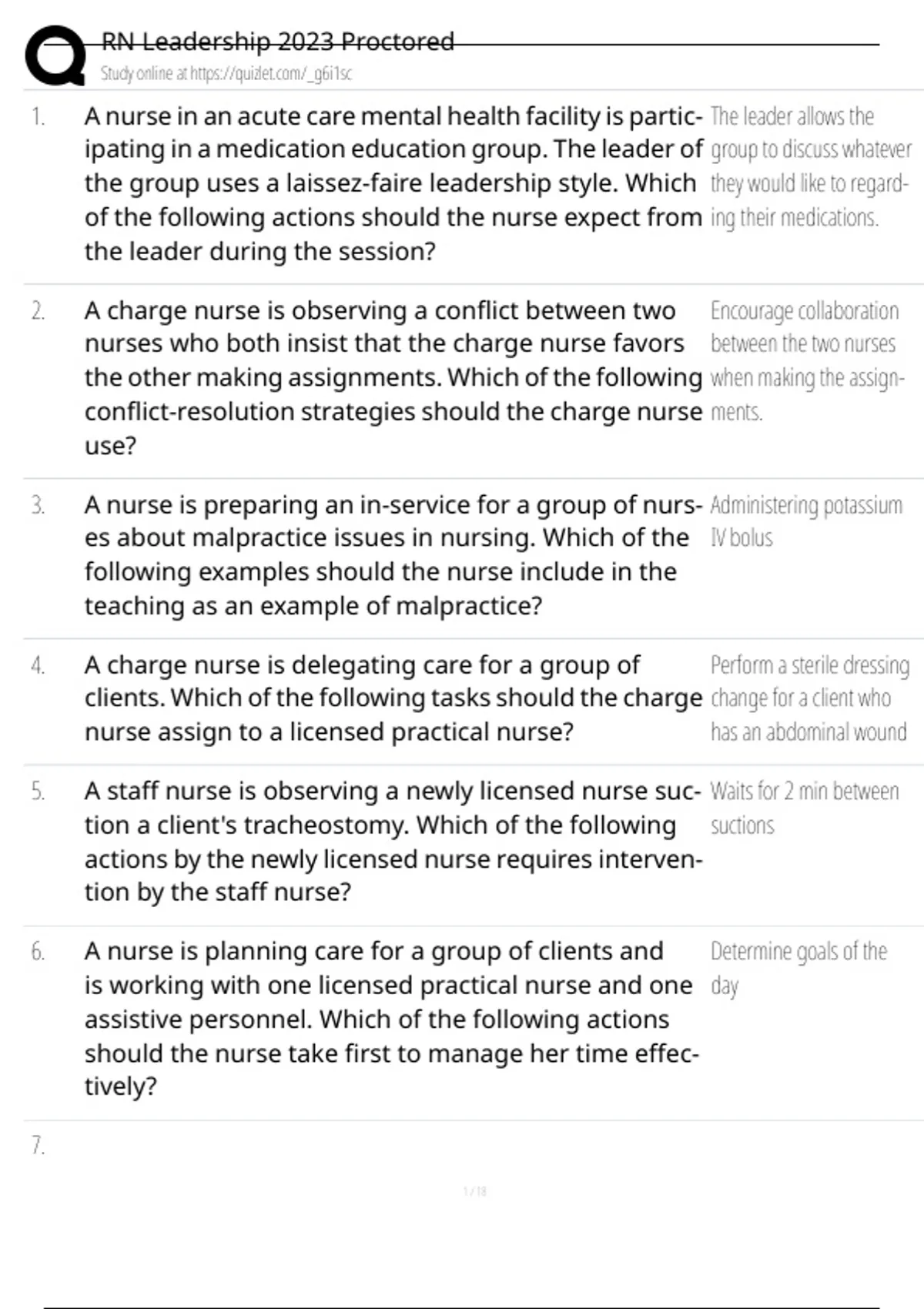 1. A nurse in an acute care mental health facility is partic- The leader allows the