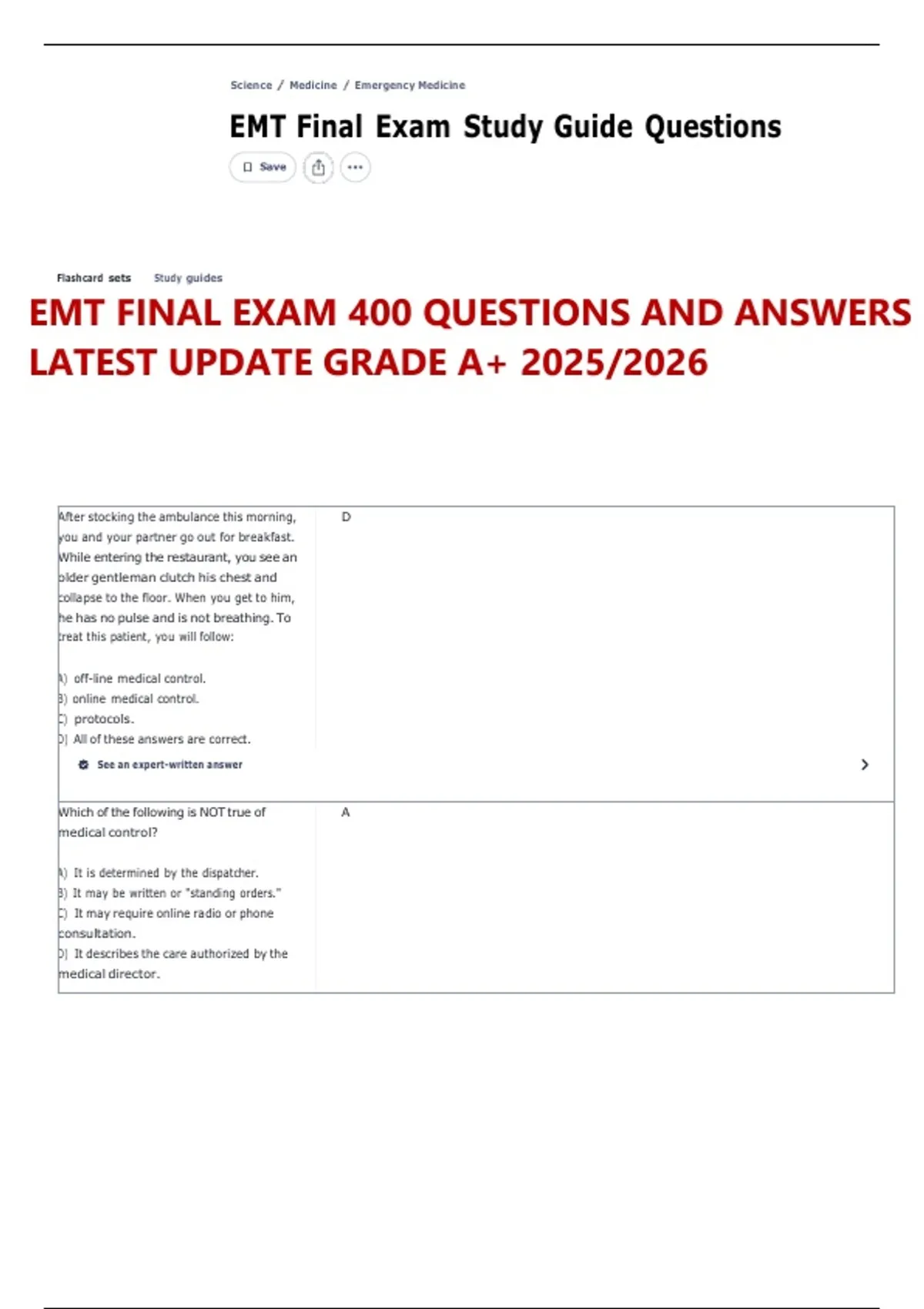 EMT FINAL EXAM 400 QUESTIONS AND ANSWERS